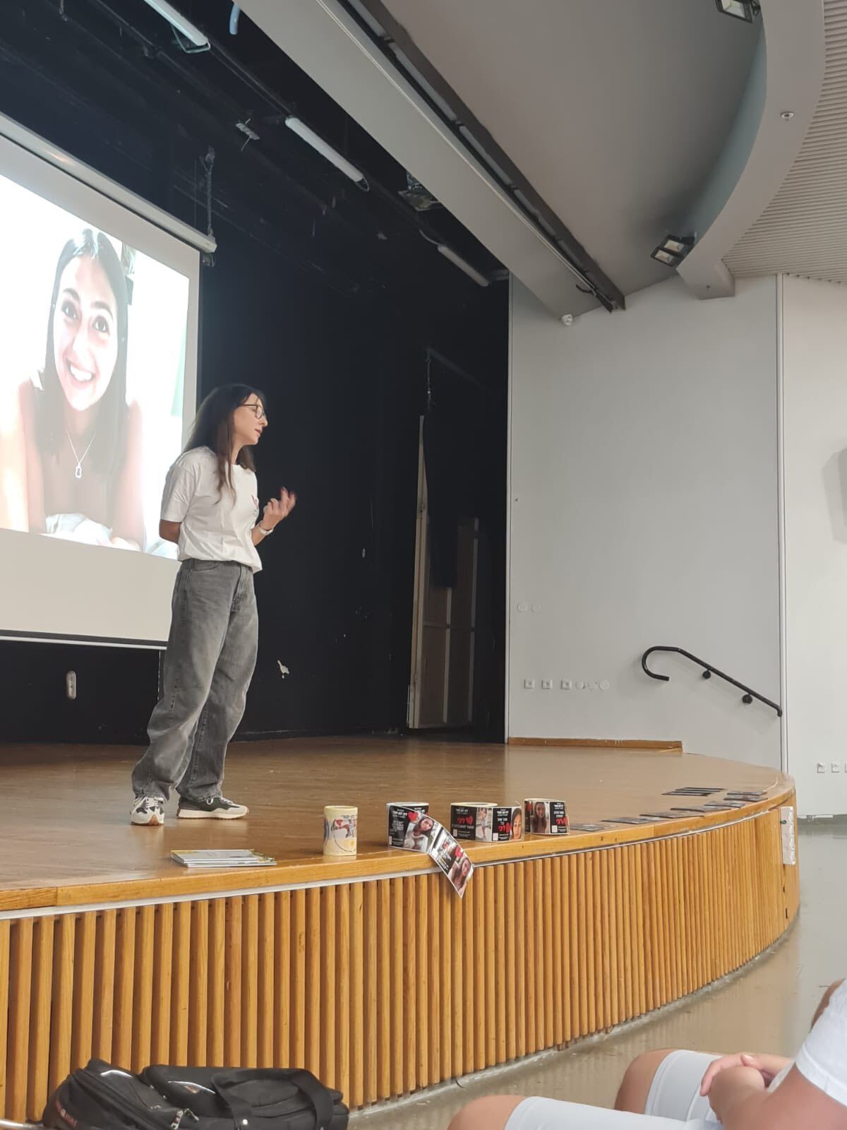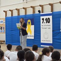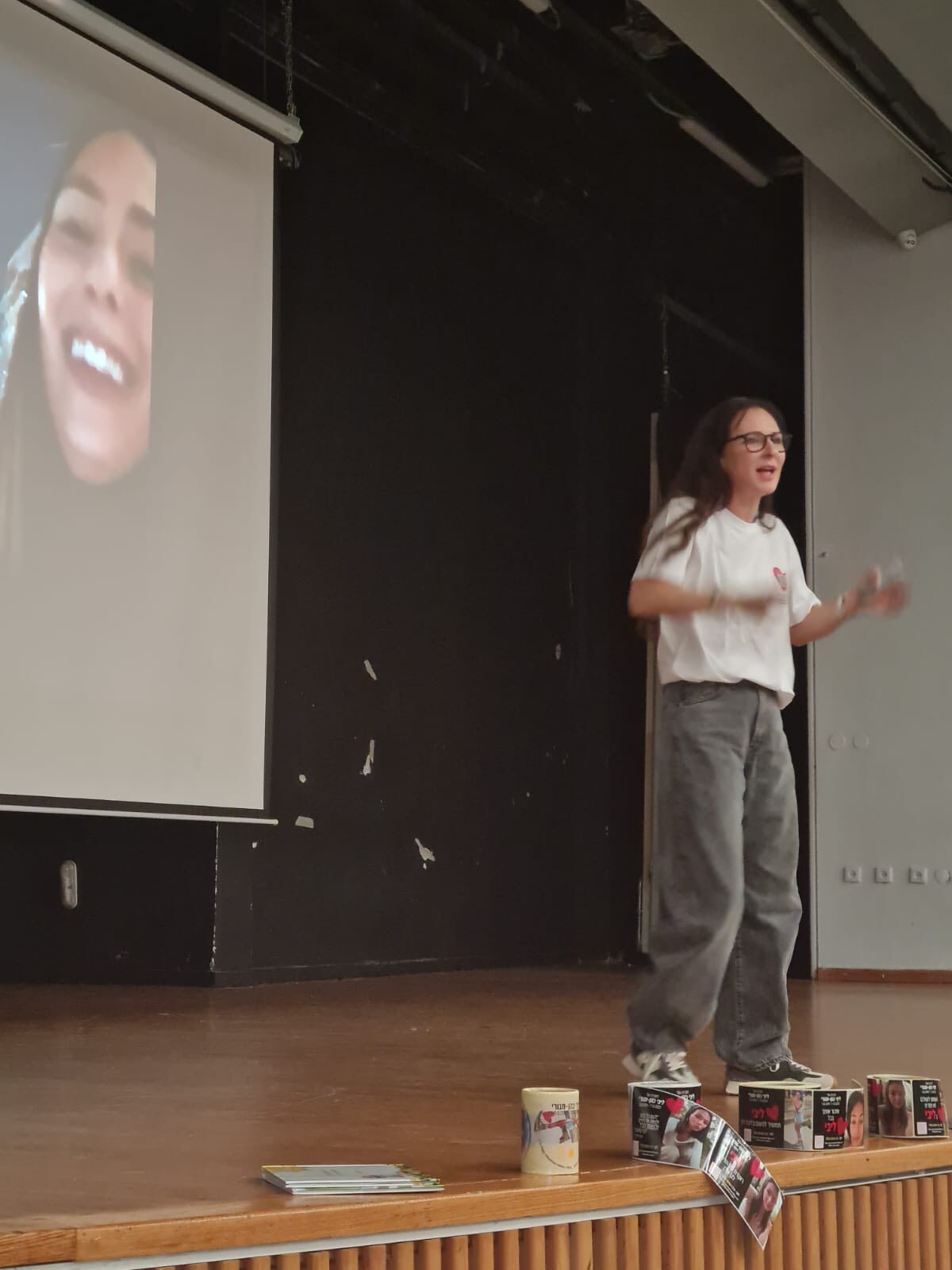 הרצאה עוצמתית ומרגשת בקרית החינוך גינסבורג ביבנה: שלי, אמה של ליבי כהן מגורי ז"ל, סיפרה לתלמידי י"א על בתה שנרצחה בנובה ועל הבחירה בחיים