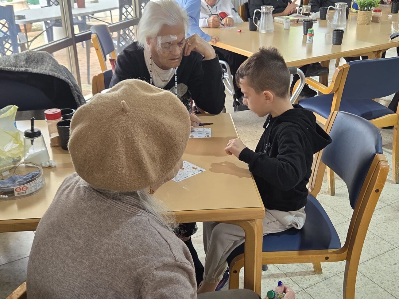 במסגרת הפעילות, התלמידים הכינו והעבירו משחק בינגו בנושא החג לקשישים. בסיום המפגש המשותף, חילקו הילדים למשתתפים חנוכיות לצביעה.
