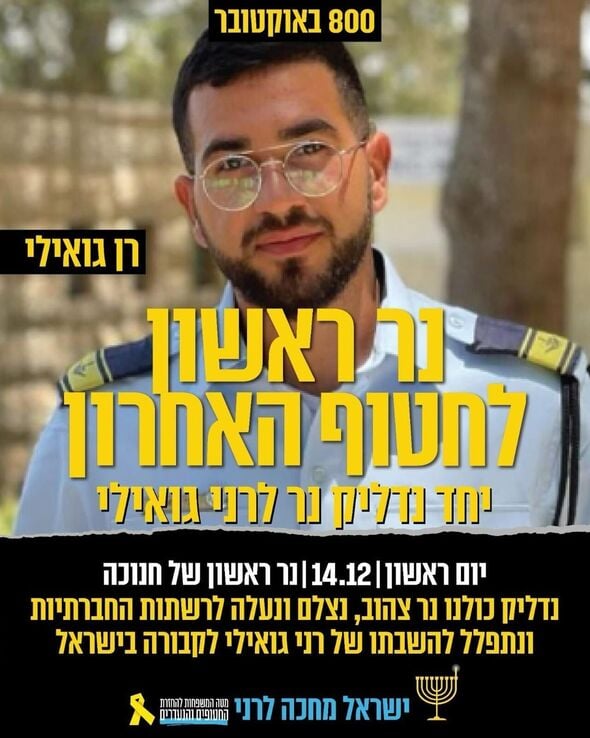 בנר ראשון של חנוכה: יוזמה להדלקת נר צהוב לציון 800 ימים לחטיפתו של רס"ר רן גואילי