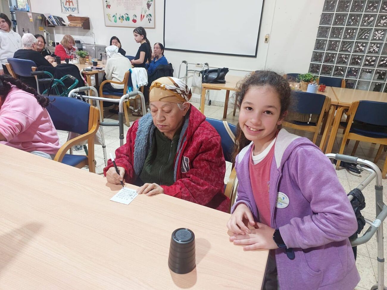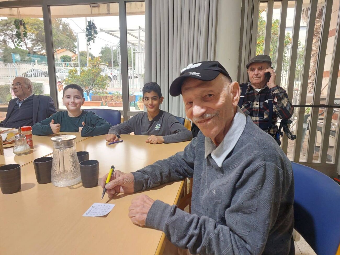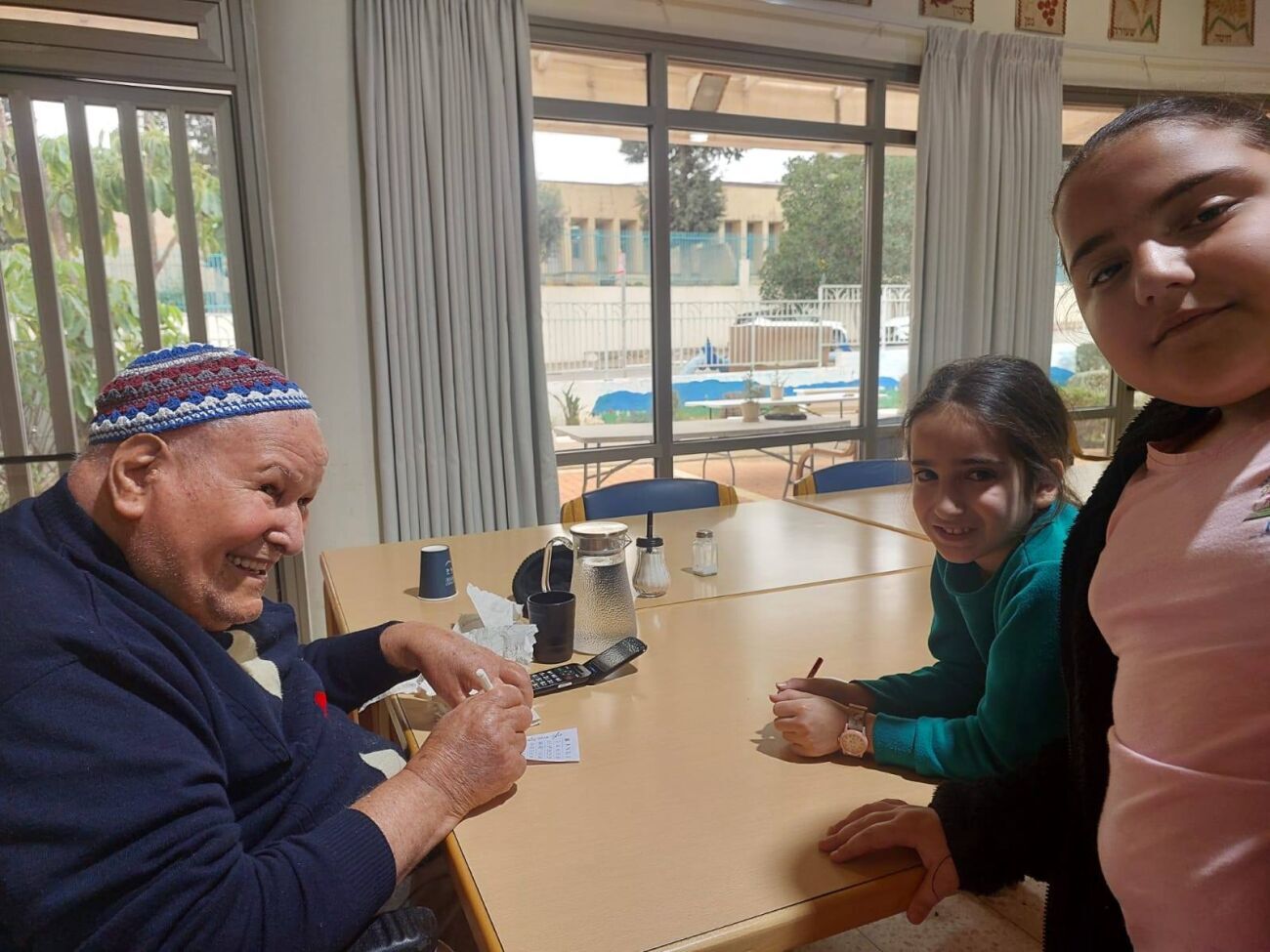 במסגרת המפגש המרגש, שיחקו התלמידים והמבוגרים יחד במשחק בינגו, צחקו ויצרו חיבור אנושי משמעותי. התלמידים גילו רגישות, סבלנות והקשבה רבה, בעוד בני הגיל השלישי העניקו להם בחזרה חיוכים, סיפורים וחום רב.