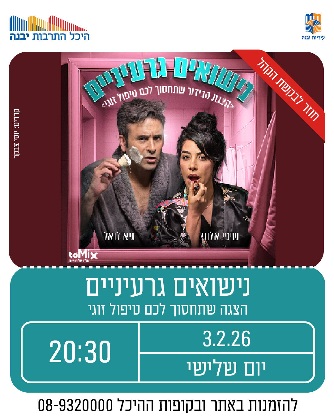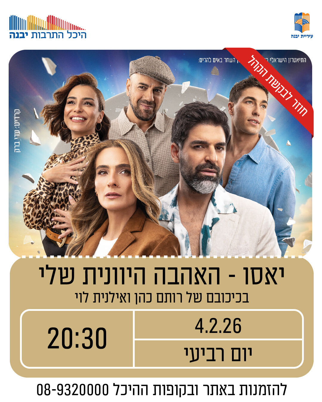 השבוע בהיכל התרבות יבנה: הקומדיה "מי בעד" של תיאטרון הקאמרי, חזרתן של ההצגות "נישואים גרעיניים" ו"יאסו" ומופע לילדים עם רועיקי מצחיקי