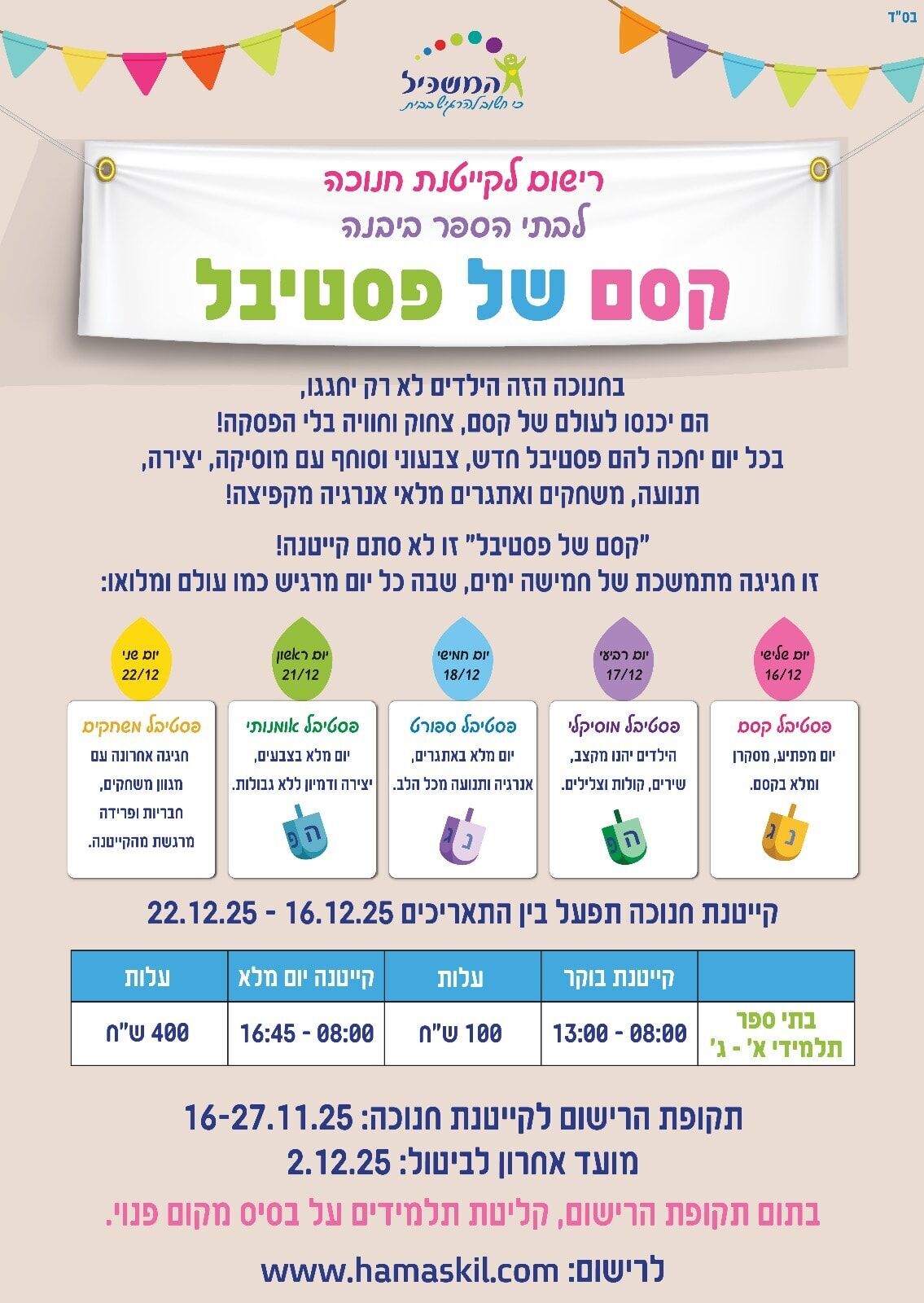 ההרשמה בין התאריכים 16-27.11, בהתאם למפעיל הקייטנה בבית הספר.