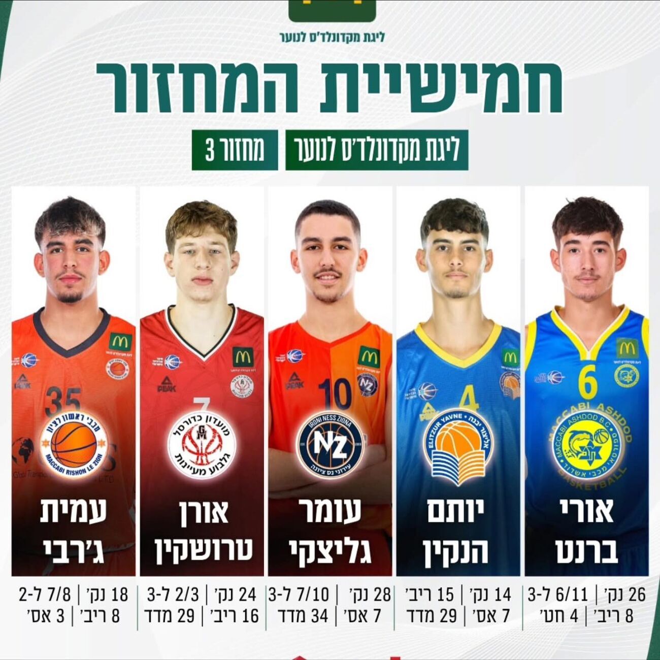 יותם הנקין בלט במיוחד במשחק והיה בכל מקום על המגרש. הוא סיים את הערב עם 14 נקודות, 15 ריבאונדים ו-7 אסיסטים, נתונים שהקנו לו מקום בחמישיית המחזור.