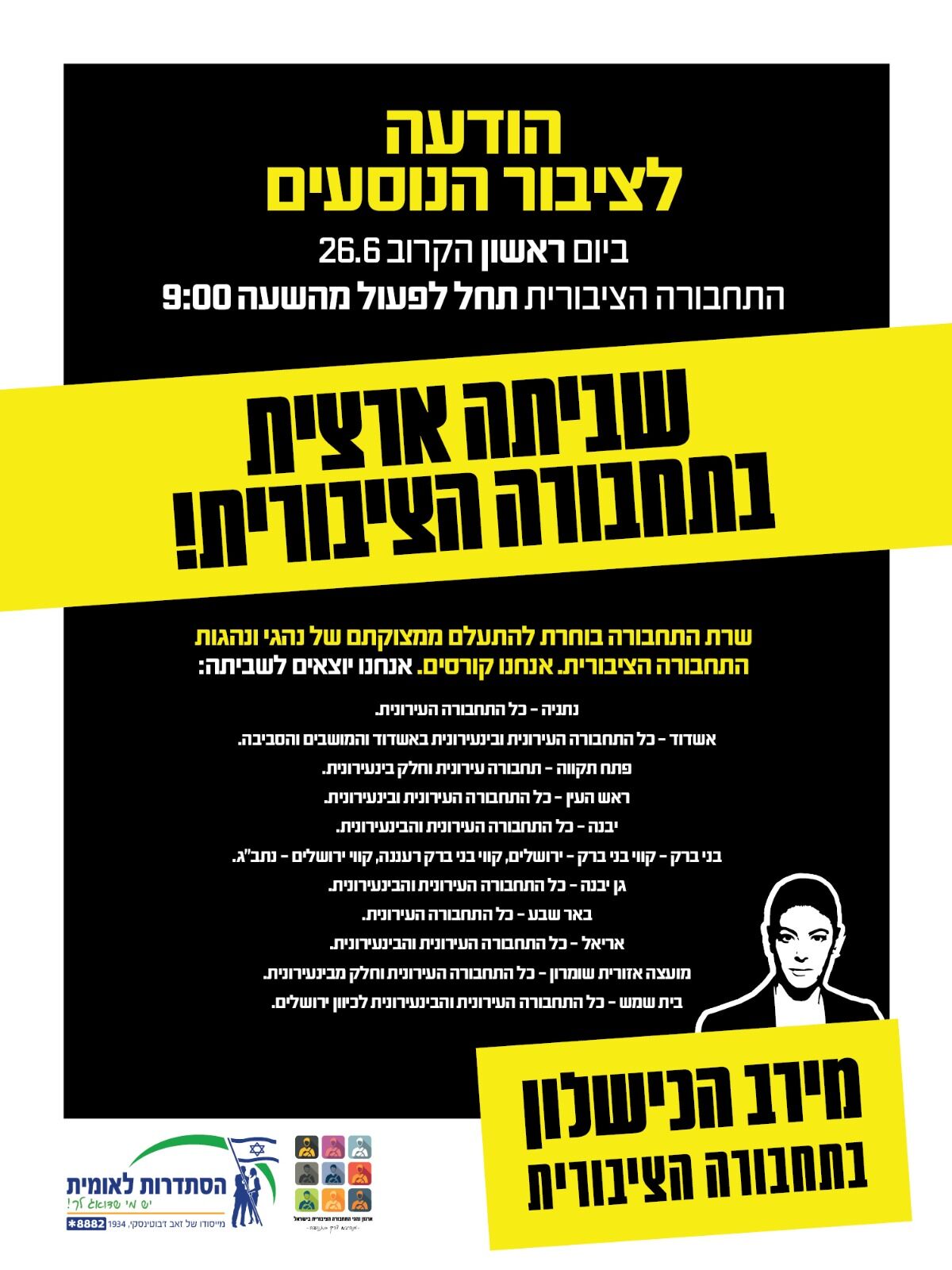 "לצערנו, השרה לא שעתה לתחינות הנהגים להיפגש איתם ולפתור את מצוקתם. יצאנו למספר שביתות לא מוגבלות עד שהשרה תתעורר ותדאג לציבור שנמצא 14 שעות ביום על הכביש ומחזיק לבדו את התחבורה הישראלית על כתפיו. אנחנו לא יוצאים לחופשת בחירות – אנחנו יום יום סובלים ומסכנים את עצמנו ואת ציבור הנוסעים על עוד השרה לא מתערבת. המאבק יסלים וזוהי רק ההתחלה".