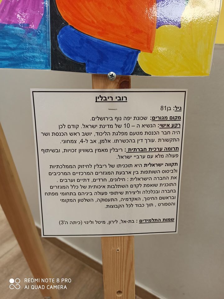 תלמידי בית ספר ניצנים בראשון לציון יצרו תערוכת דיוקנים של אנשי ציבור בהם נשיא המדינה, רובי ריבלין, מרים פרץ ורז קינסטליך