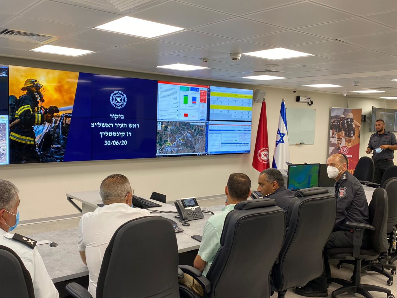 ראש עיריית ראשון לציון רז קינסטליך וסגנו, אבי חיים, התארחו היום בקריית הכבאות הלאומית בראשון לציון ונפגש עם נציב כבאות והצלה לישראל, רב טפסר דדי שמחי, שחשף בפניו מקצת מיכולות מערך כבאות והצלה.