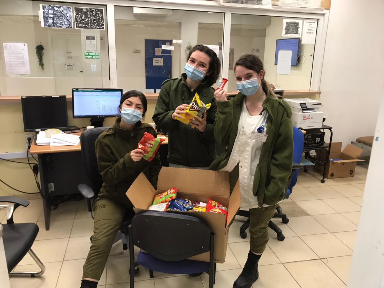 צוותי חט"ב טביב בראשון לציון יצאו לשמח ילדים ומבוגרים במחלקות הקורונה וחלקו משלוחי מנות לחיילים