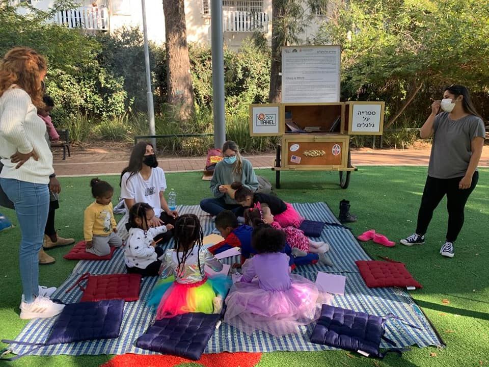 בזכות מתנדבי תוכנית יהל הפועלת בשכונת רמת אליהו בראשון לציון, הוקמה הספרייה על גלגלים - ספרייה על אופניים איתה מגיעים המתנדבים לפארקים ומקיימים פעילויות ושעות סיפור באנגלית לילדים