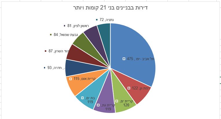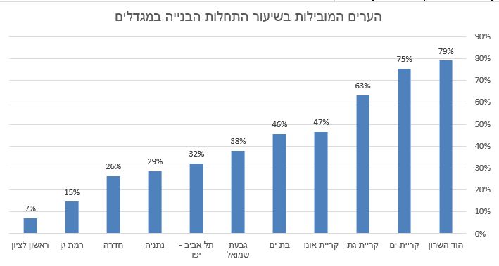 הערים המובילות בשיעור התחלות הבנייה של דירות במגדלים בני 21 קומות ומעלה הן: