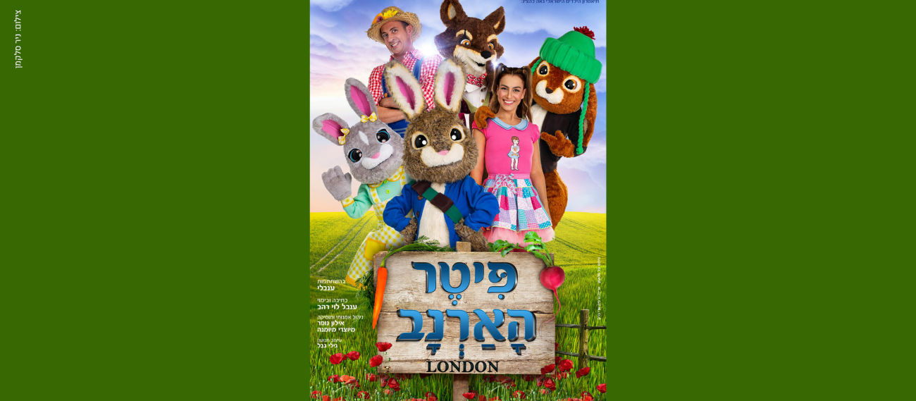 פיטר הארנב מגיע לישראל! הארנב האהוב והשובב ששבה את לבבות הילדים וההורים במשך דורות בטלויזיה, בקולנוע ובספרים מגיע לישראל היישר מלונדון! קומדיה קלאסית ומרגשת מבית היוצר של תיאטרון הילדים הישראלי (תירס חם, שמוליקיפוד ועוד...), המשלבת מוסיקה עכשווית ובועטת בניצוחה של איילון נופר - מיוצרי מיומנה, כוכבת הילדים האהובה ענבלי והבובות המקוריות: פיטר הארנב, בנג'מין, קוטן, מר מקרגור, מר טוד, הינשוף בראון ועוד.