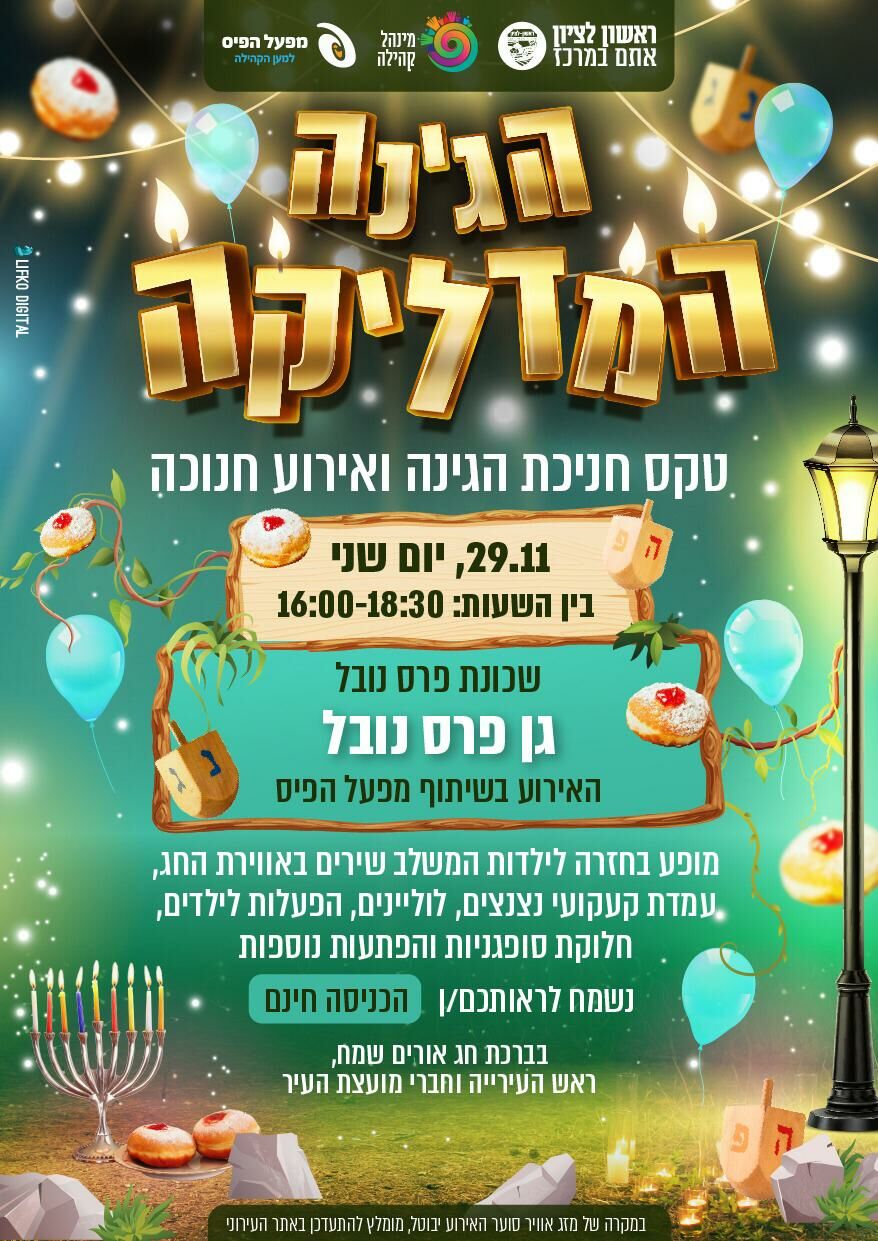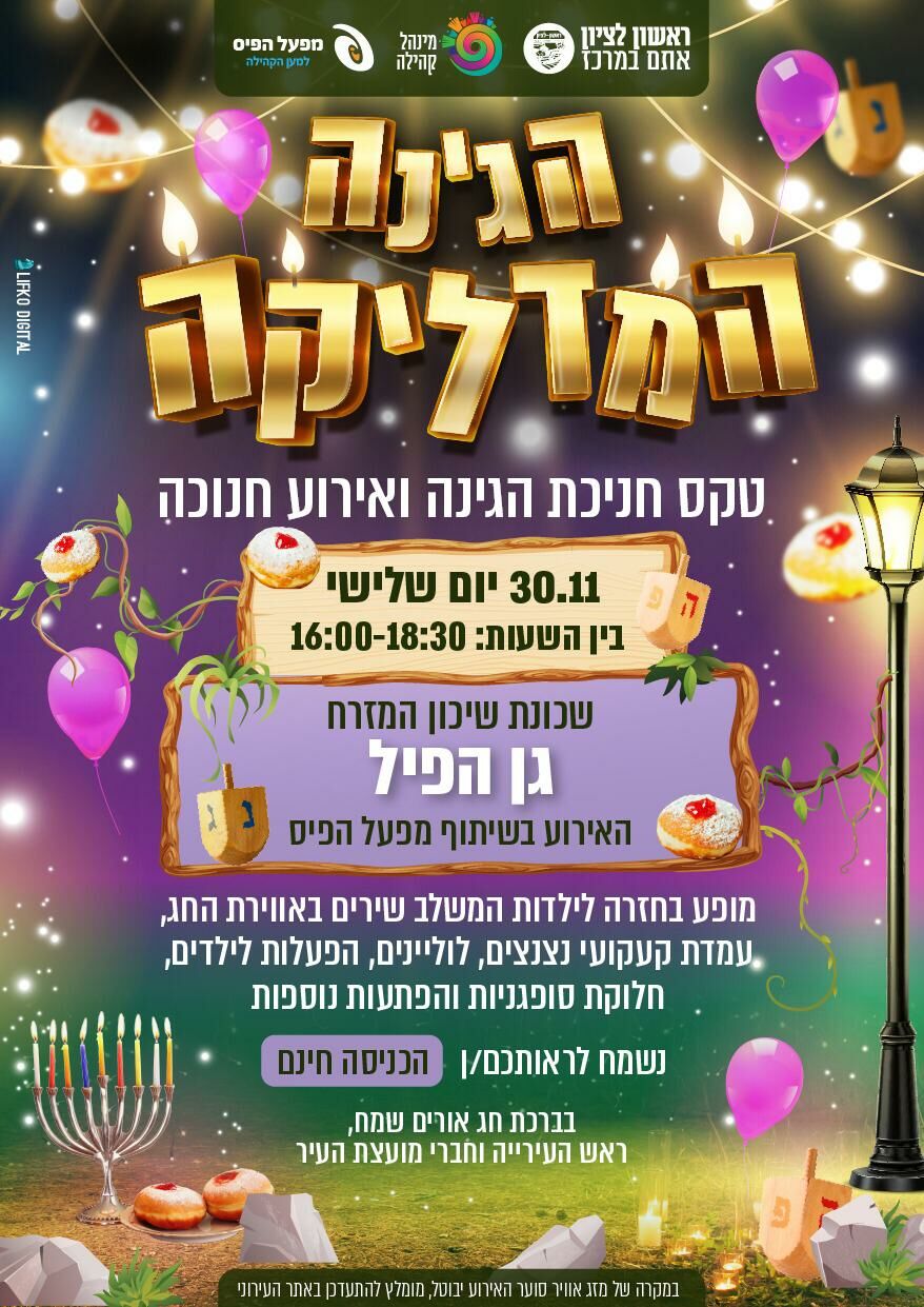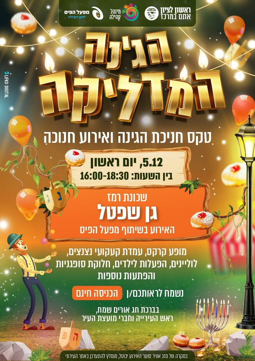 החל מהיום (שלישי 23.11) יחלו אירועי חנוכה בשכונות ראשון לציון עם מופעים, סופגניות, מופעי קרקס ועוד; האירוע הראשון מתקיים בשכונת הרקפות