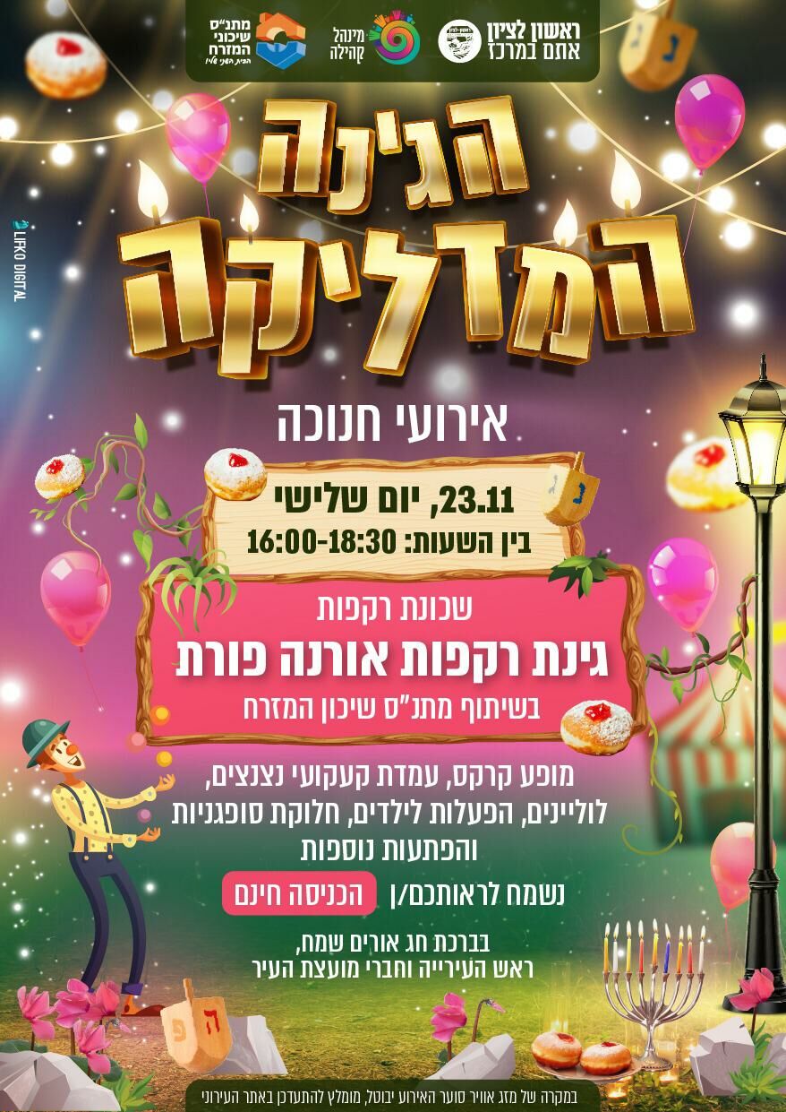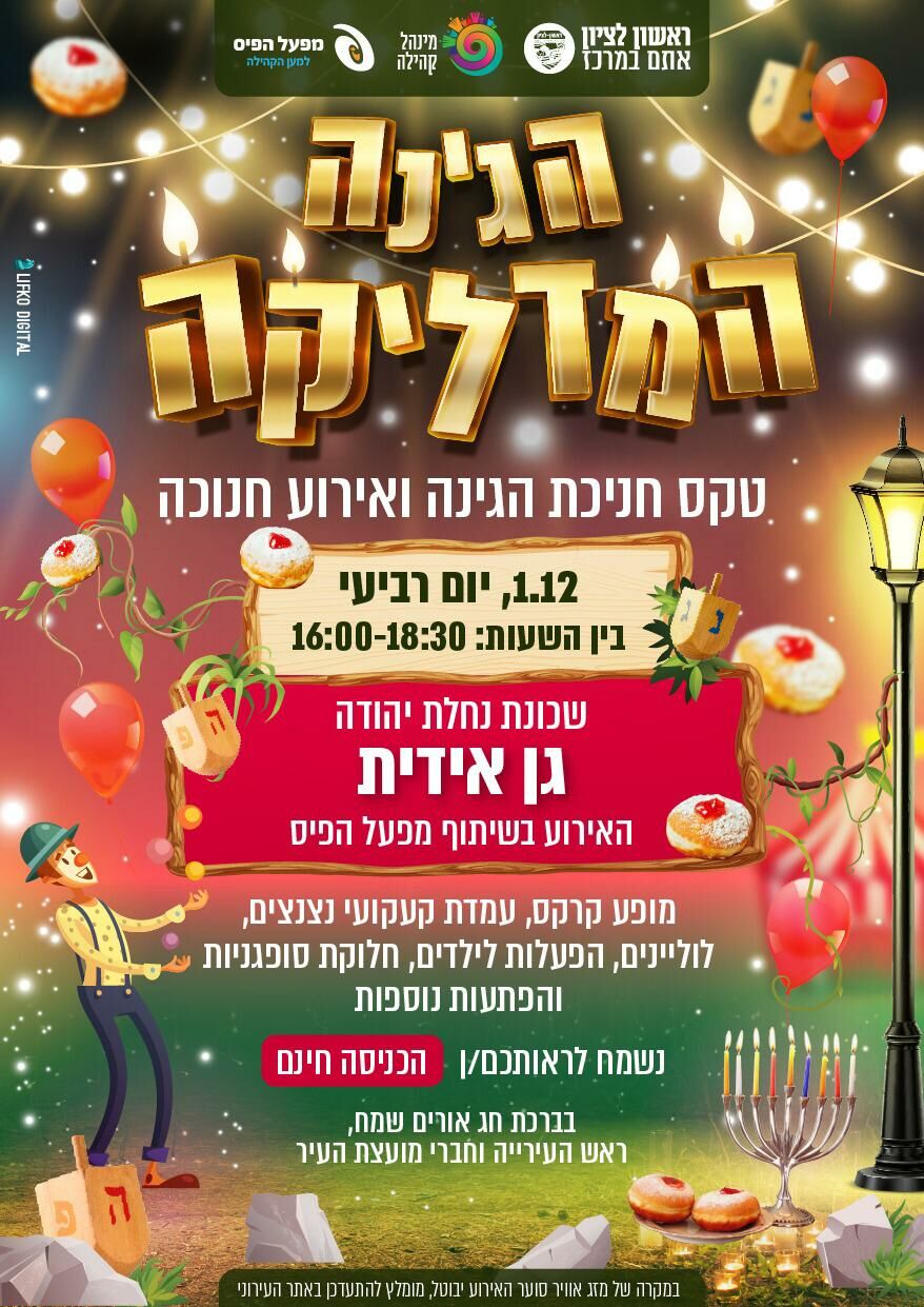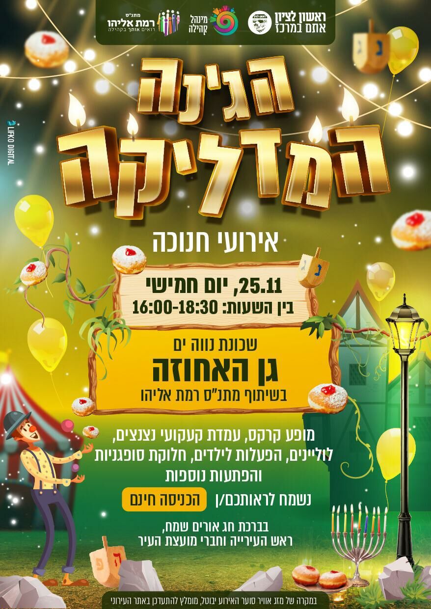 החל מהיום (שלישי 23.11) יחלו אירועי חנוכה בשכונות ראשון לציון עם מופעים, סופגניות, מופעי קרקס ועוד; האירוע הראשון מתקיים בשכונת הרקפות