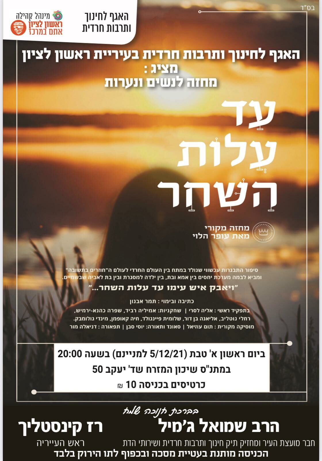יום חמישי 2.12.21 שעה 20:00 מתנ"ס שיכוני המזרח