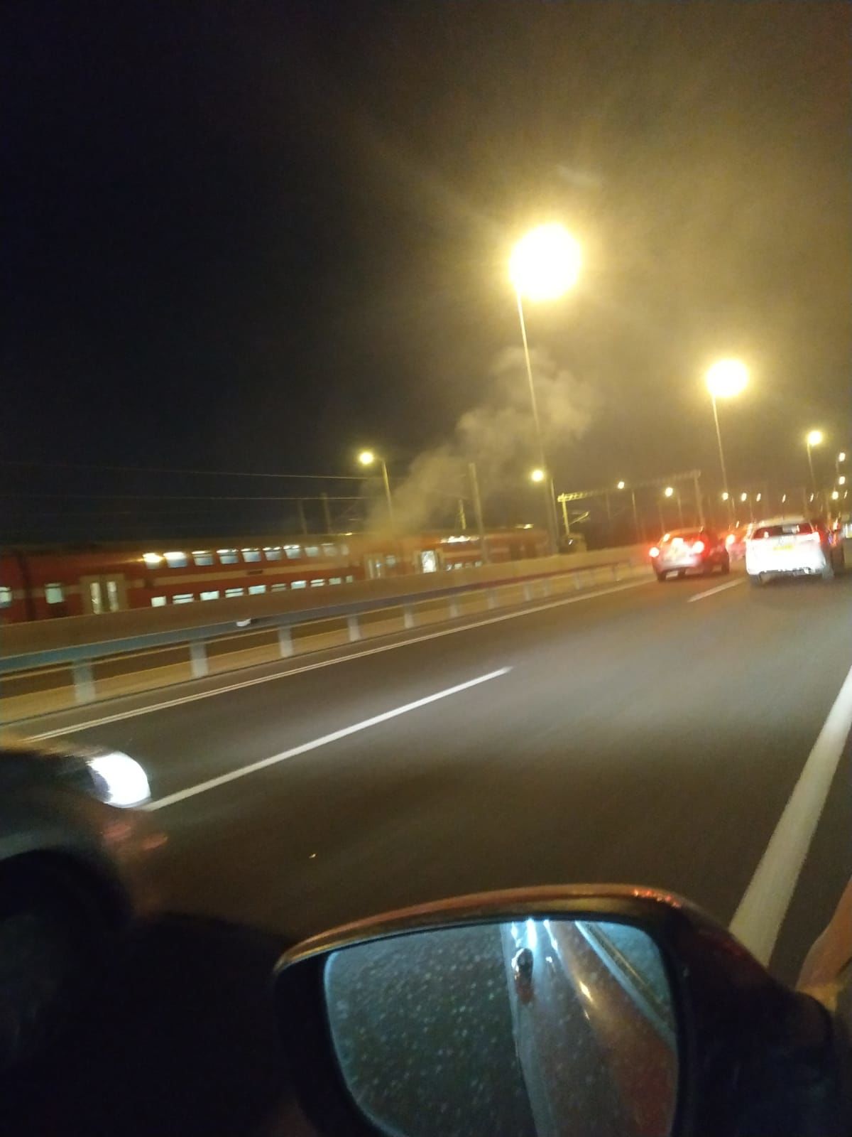 פעם שנייה היום! ברכבת שיצאה מרחובות יצא עשן באחד הקרונות, הנוסעים שברו את החלונות... מצ"ב תמונות
