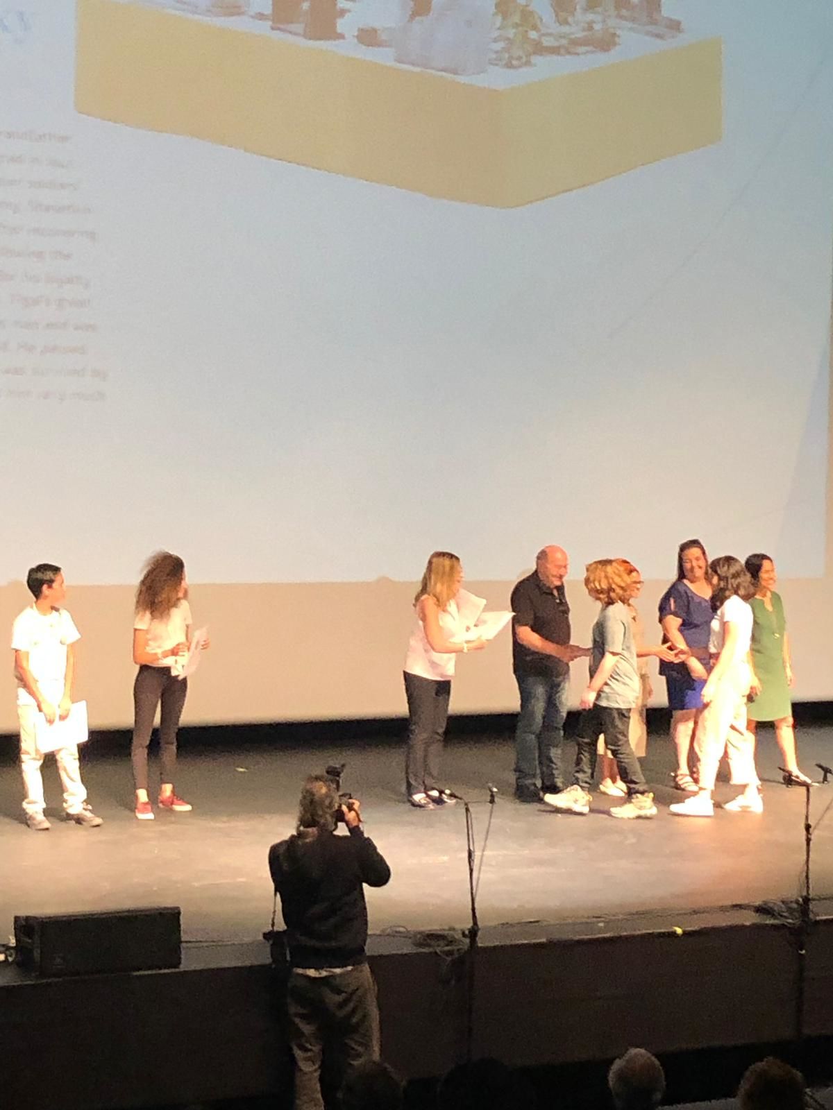 שלי שומרון תלמידת דה שליט זכתה בתחרות על המיצג שסיפר את סיפור המשפחה היושבת לצד השולחן ומהם יוצאים עקבות המספרים את סיפורם האישי. לטענת שלי בזכות זכרונותיו של סבא רבא שלה שסיפר את סיפורם של משפחת ריבקין שמחציתם נספו בשואה או מתו במחנות העבודה, הם שמרו על הזכרונות ואף הצליחו לשמור קשר עם המשפחה.