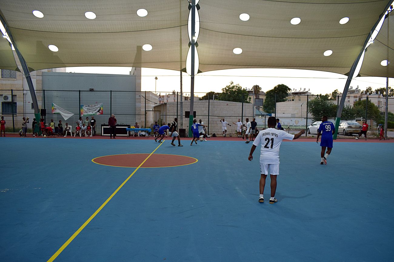 אמש (ראשון) נערך טקס חניכת המגרש שחודש בו התקיים משחק ראווה של ילדי השכונה.