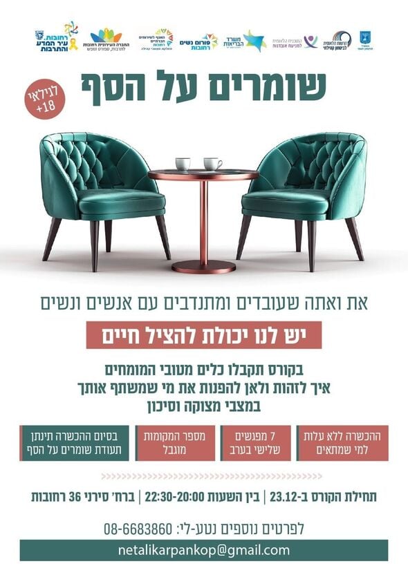 ברחובות תתקיים הכשרה מקצועית וחשובה תחת הכותרת "שומרים על הסף", המיועדת לאנשים העובדים ומתנדבים עם הקהילה. מטרת ההכשרה היא להעניק כלים לשיפור איכות חייהם של הסובבים ולסייע בזיהוי מצבי סיכון.