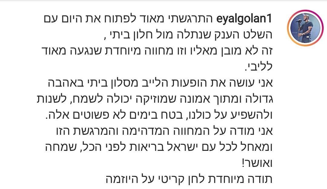 וכך כתב אייל גולן בתגובה בדף האינסטגרם שלו