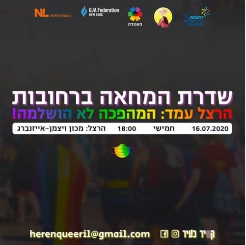 הקהילה הגאה ברחובות מתכננת ביום חמישי 16/7 החל מהשעה 18:00 הפגנת מחאה שקטה בצפון רחוב הרצל בין רחוב אייזנברג למכון ויצמן.