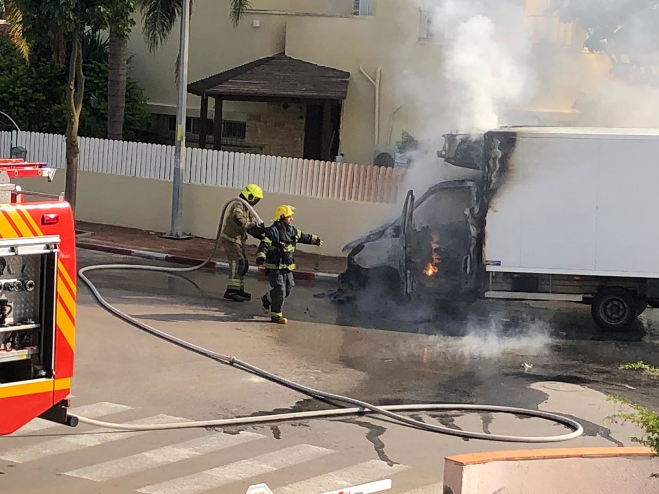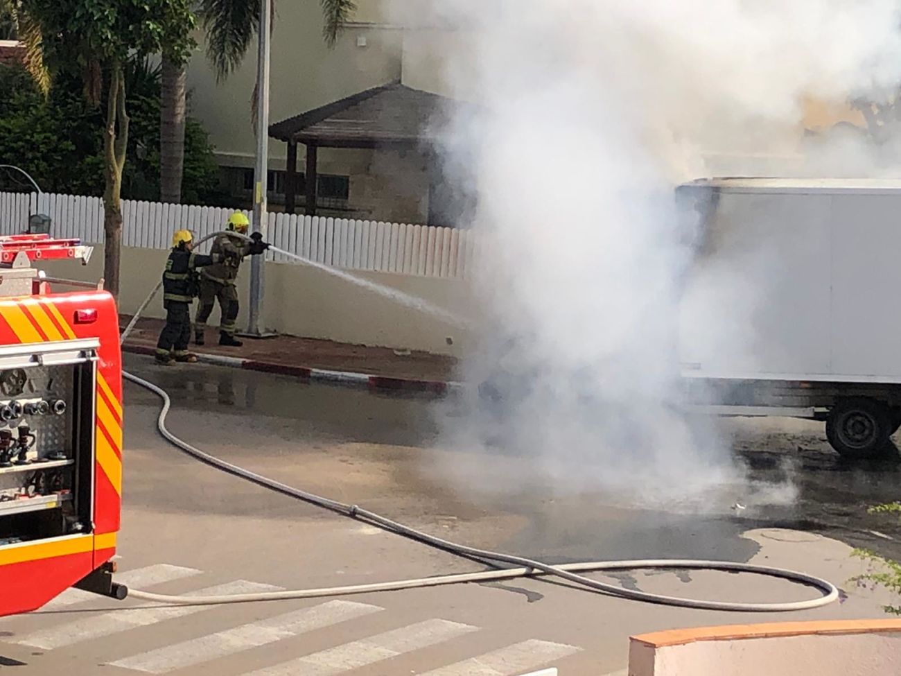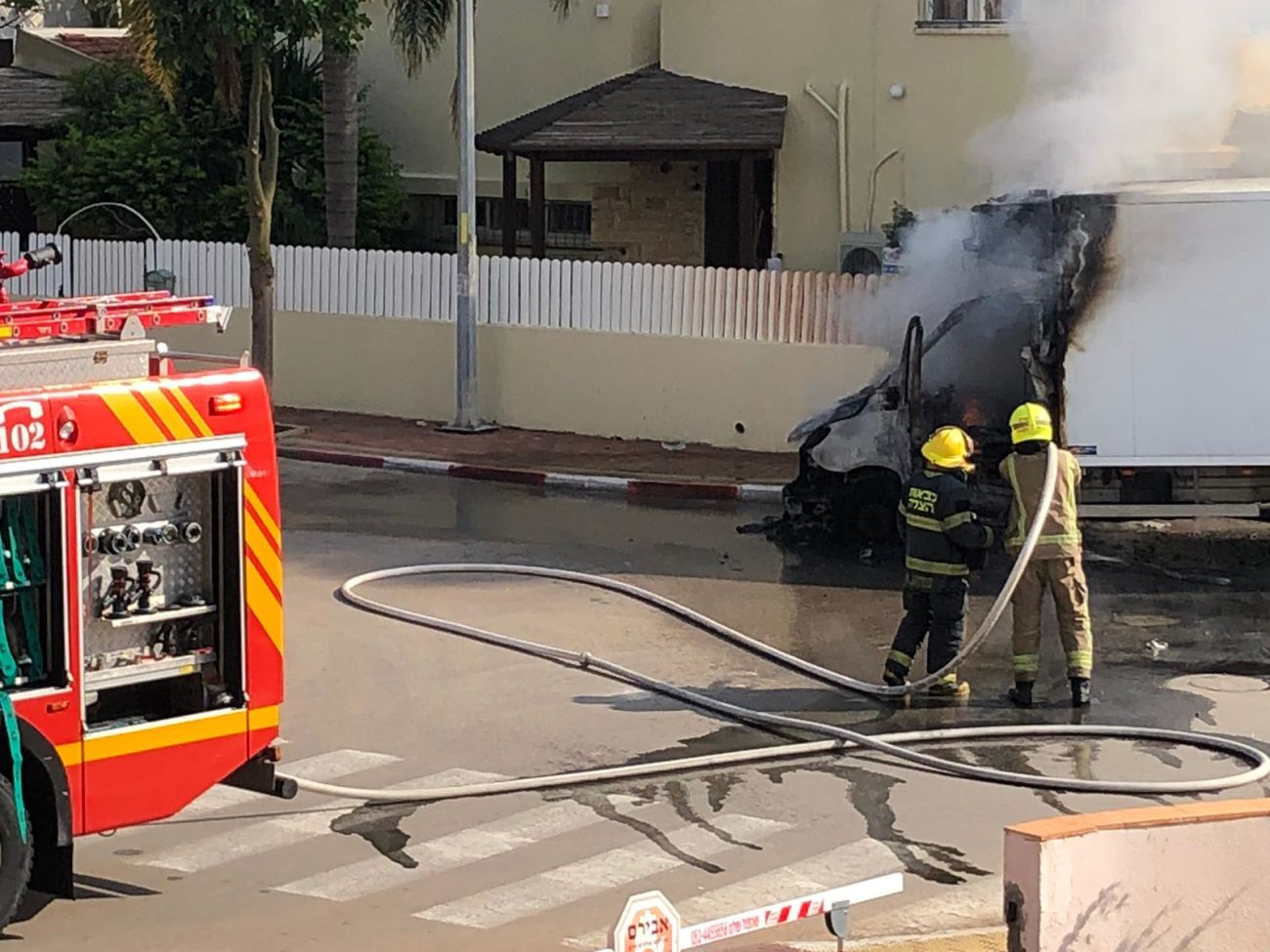 משאית עולה באש כנראה בגלל תקלה ברחוב החורש - הבוסתן בשכונת רחובות החדשה ברחובות