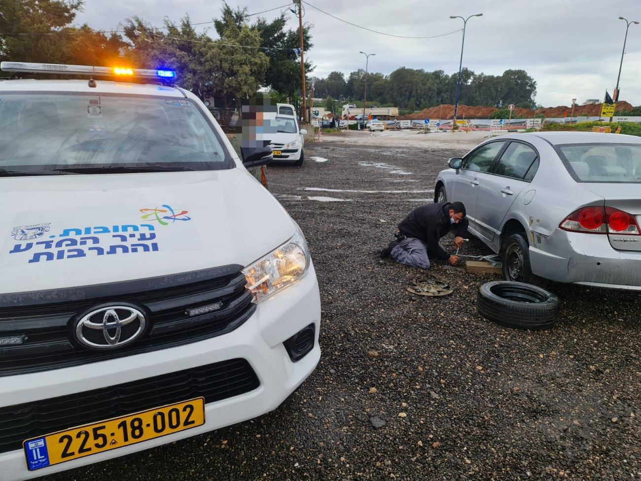 מחמם לב: תושב נתקע עם רכבו בגשם במתחם בדיקות הקורונה ברחובות ופקחי השיטור העירוני עזרו לחלץ אותו