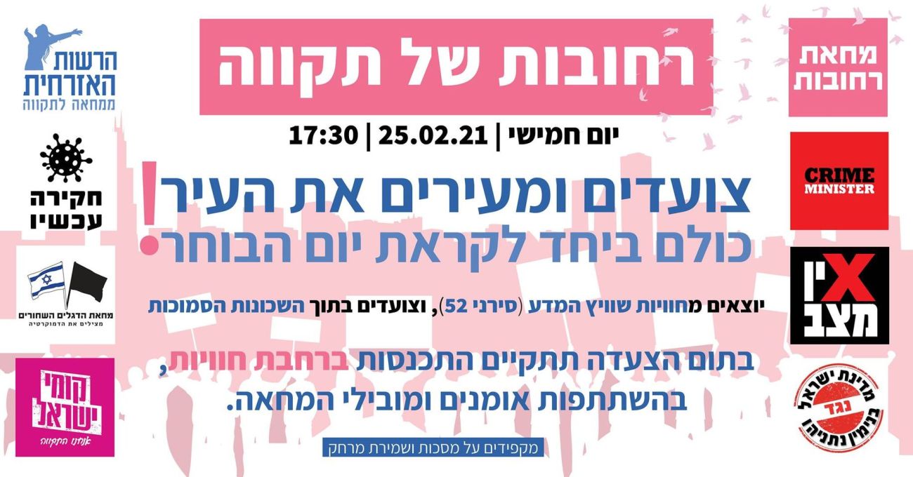 היום חמישי 25/2 צעדת מחאה ברחובות של מתנגדי ראש הממשלה בנימין נתניהו