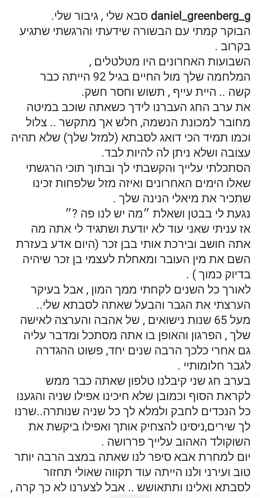 פוסט הפרידה של דניאל מסבה שהלך לעולמו: