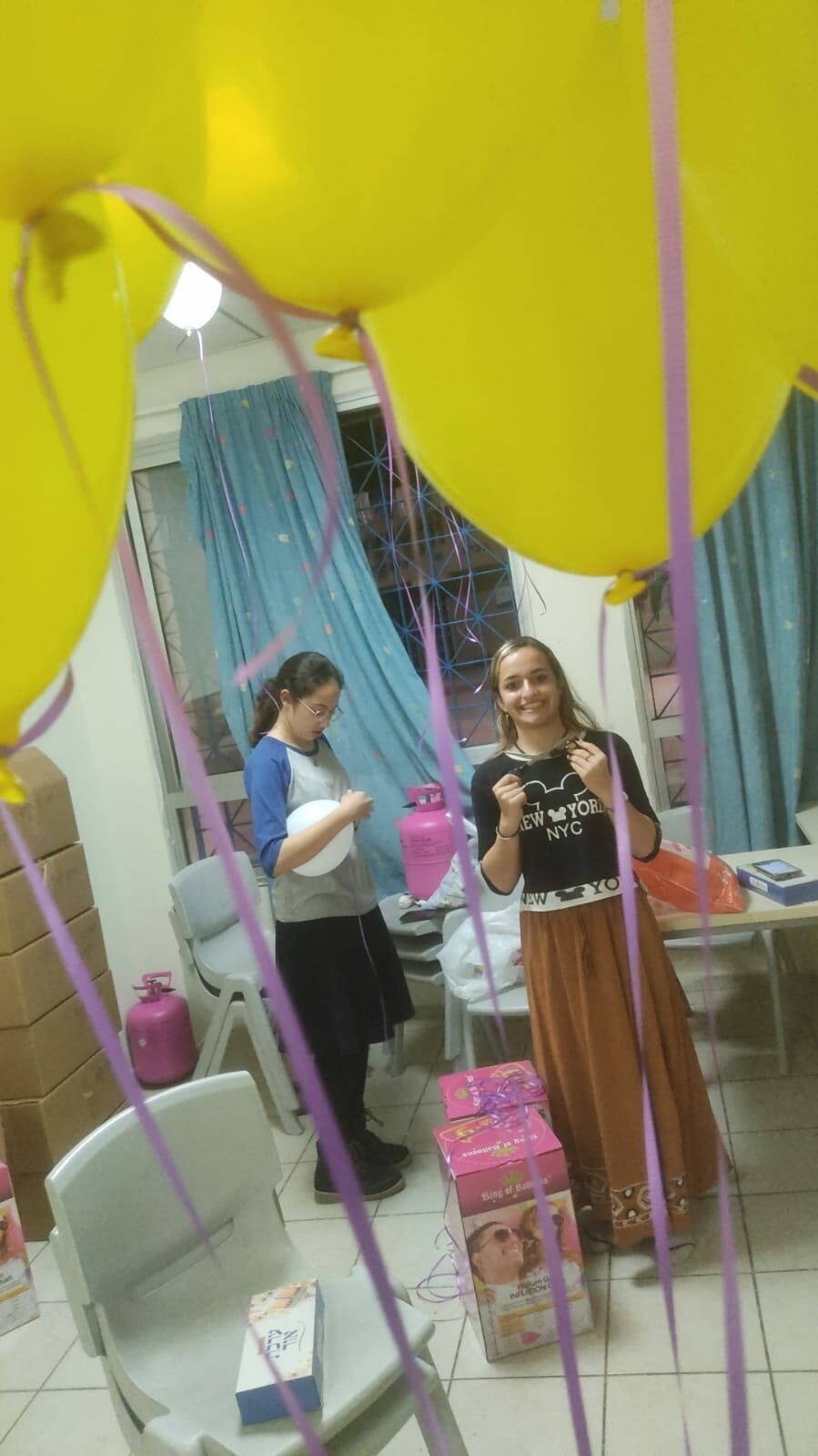 אמש החלו הבנות בקישוט השכונה ותליית בלונים על הרכבים