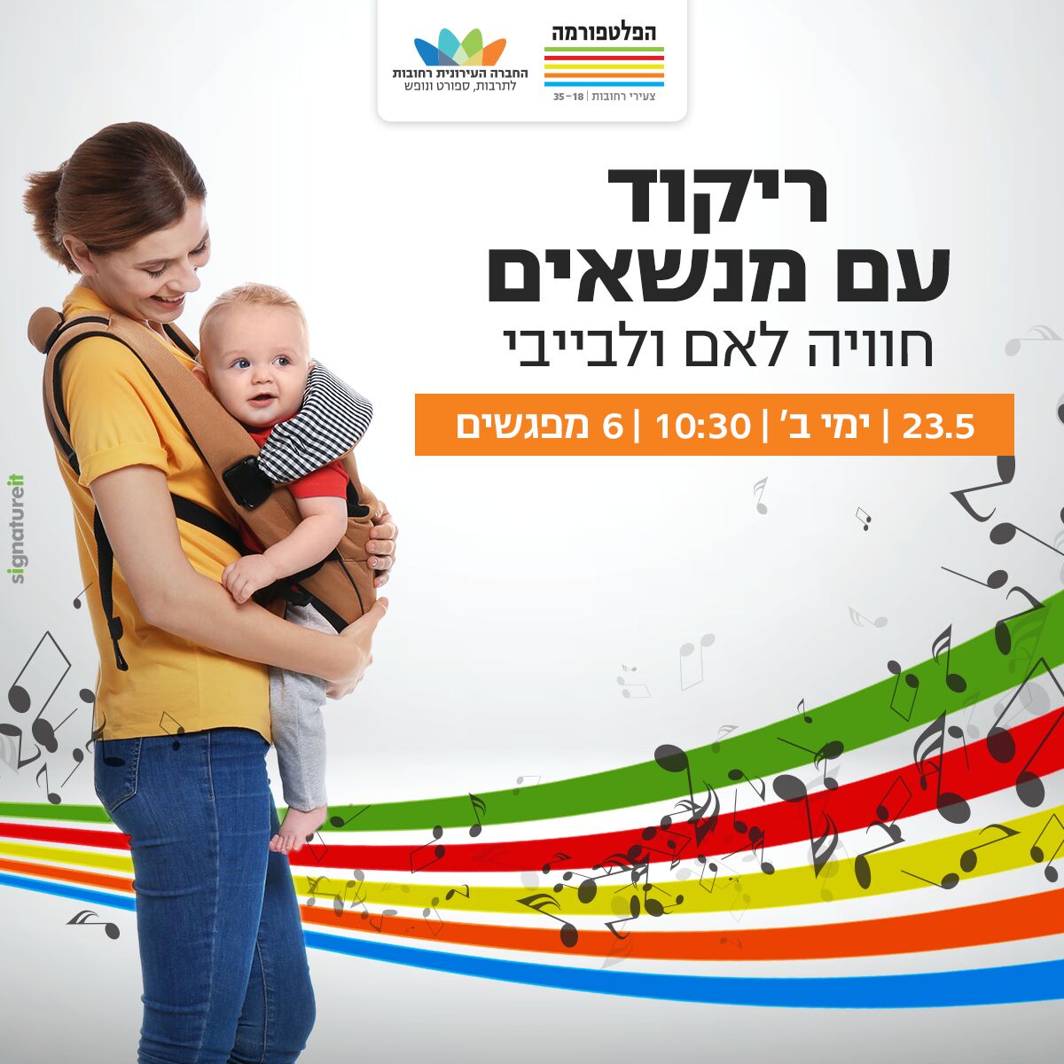 סדנאות להורים הצעירים של רחובות! במהלך חודש מאי תפתח הפלטפורמה שתי סדנאות להורים: ריקוד עם מנשאים וליווי התפתחותי