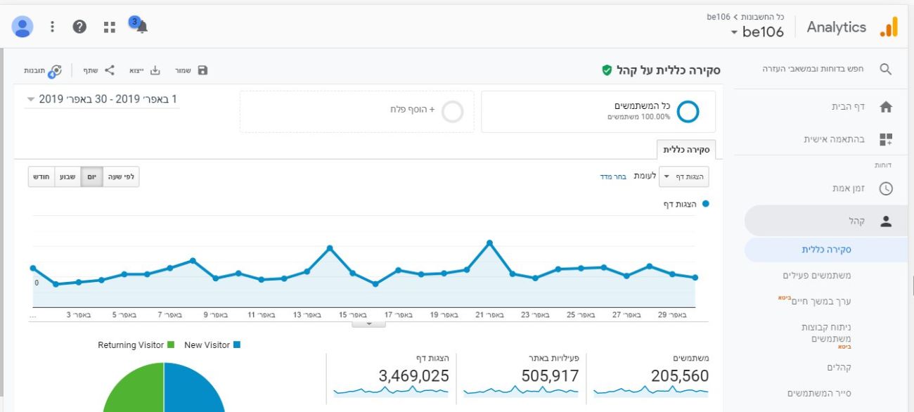 להלן נתוני הגלישה על פי נתוני גוגל אנליטיקס לחודש אפריל 2019 בכל הרשת