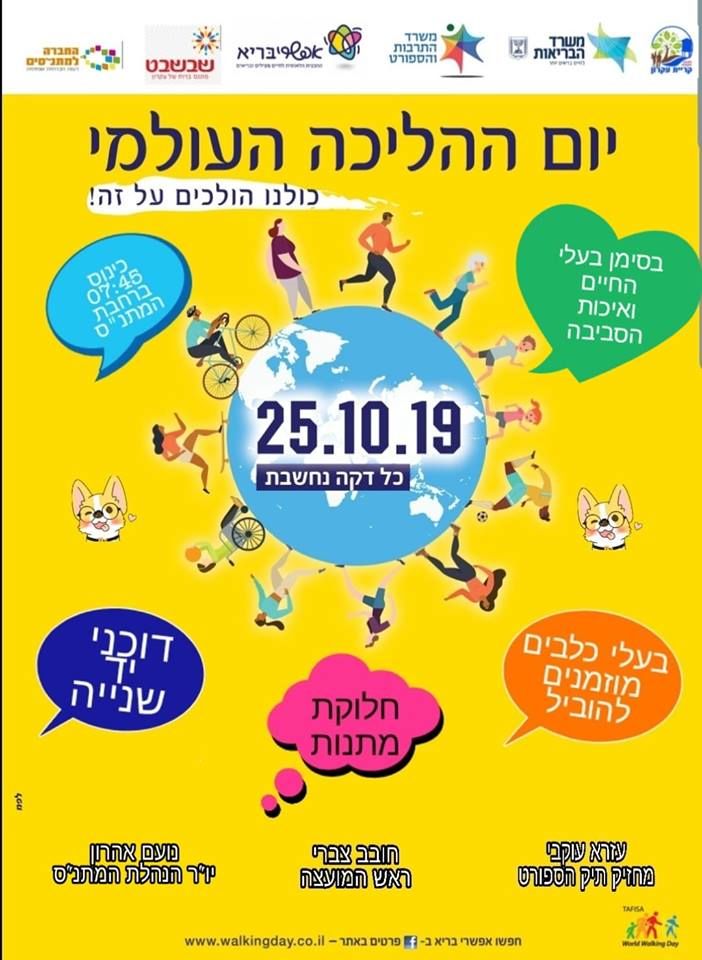מקדמים אורח חיים בריא בקריית עקרון! ביום שישי 25.10 יחלו אירועי יום ההליכה העולמי של קריית עקרון במתנ"ס קריית עקרון