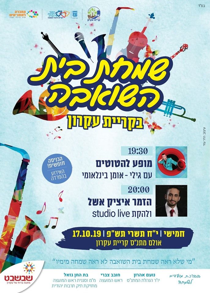 שמחת בית השואבה בקריית עקרון! מופע להטוטים והופעתו של הזמר איציק אשל מחכים לתושבים ביום חמישי 17.10 במתנ"ס שבשבט