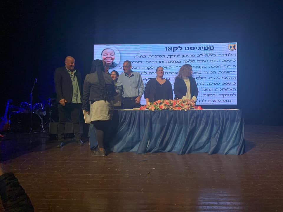 טיגיסט לקאו מקריית עקרון זכתה באות הפעיל המצטיין המחוזי של משרד החינוך
