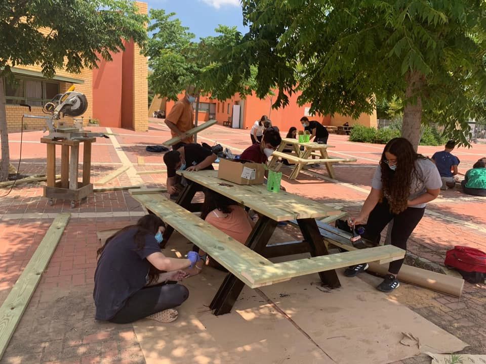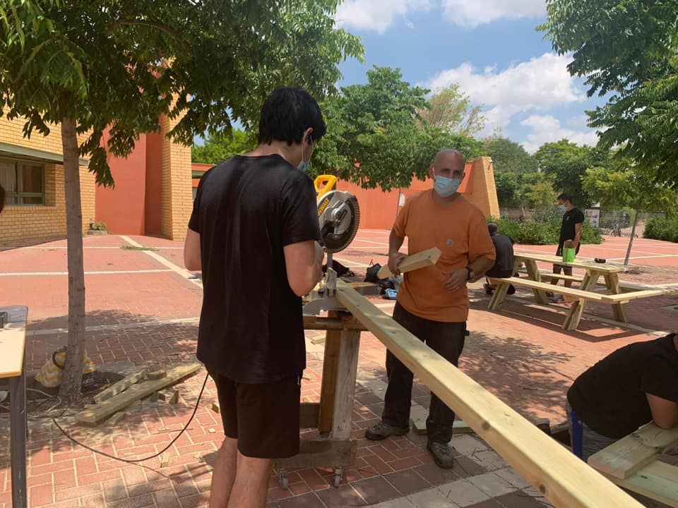 תיכון רבין מתחדש! ביוזמת המורה יוסי פסדר ותלמידי שכבת י' בתיכון רבין מזכרת בתיה הוצבו בחצר התיכון שולחנות וספסלי ישיבה לרווחת התלמידים