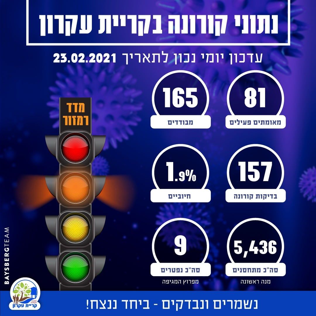 המועצה המקומית קריית עקרון ממשיכה במאבק להורדת התחלואה ביישוב. מחר רביעי 24.2 יפתחו שני מתחמי בדיקות קורונה ללא צורך בהפנייה וללא הזמנת תור. שעות הפעילות 13:00-20:00
