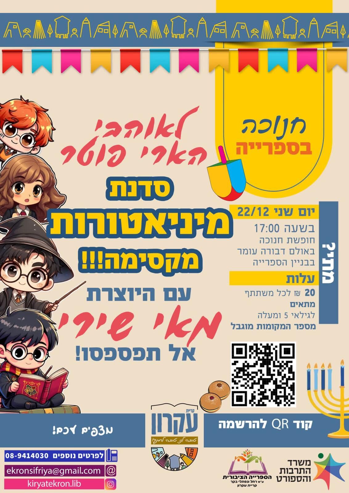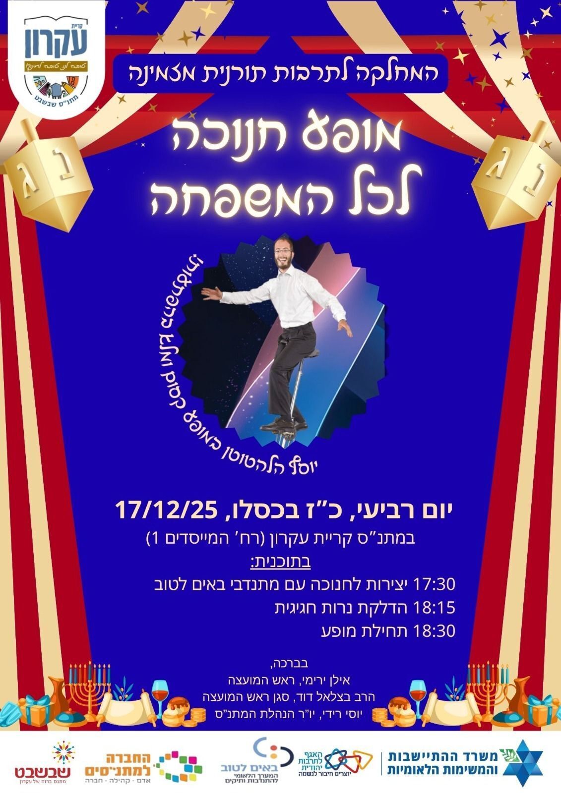 המועצה המקומית קריית עקרון והספרייה הציבורית מזמינות את נשות ונערות היישוב לאירוע מיוחד ומרגש לכבוד חג החנוכה, תחת הכותרת 'האור שאת בעולם'.