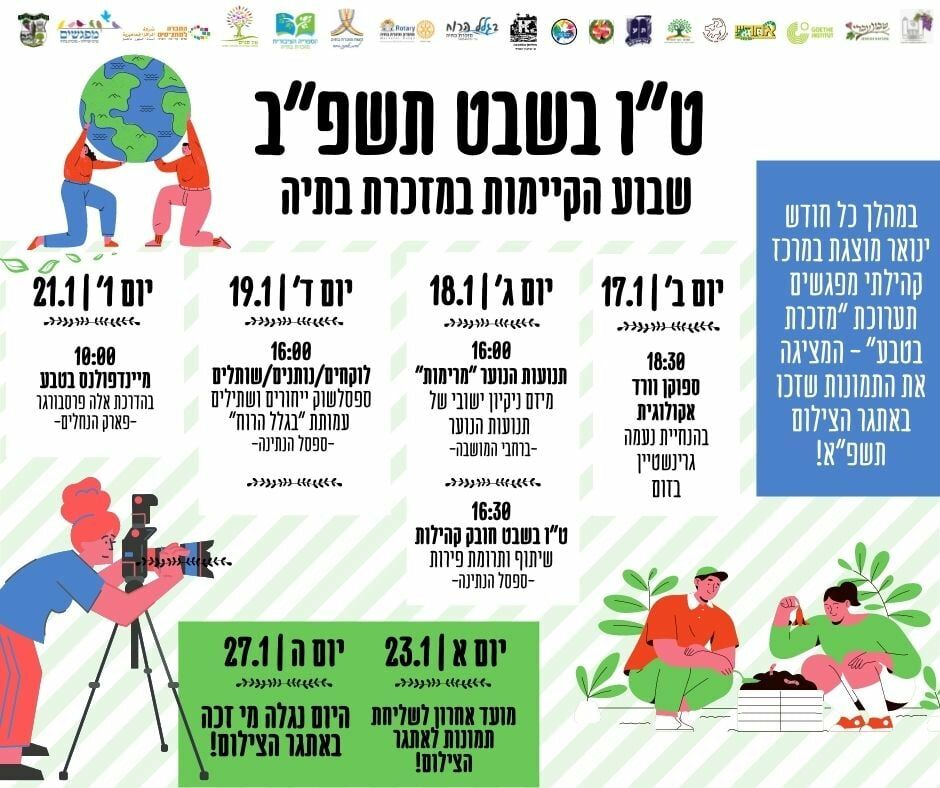 מיזם הניקיון היישובי, ספסלשוק בספסל הנתינה, סדנת מיינפולנס, אתגר הצילום ועוד מגוון אירועים מחכים לתושבי מזכרת בתיה במסגרת אירועי שבוע הקיימות