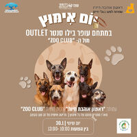 יום האימוץ יתקיים ביום שישי ה-30.01.26, בין השעות 10:00-13:00, בעופר בילו סנטר OUTLET מול רחבת החנות ZOO CLUB.