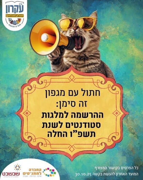 מועצת קריית עקרון פתחה את ההרשמה למלגות הלימודים שיינתנו לסטודנטים בתמורה לפעילות התנדבותית