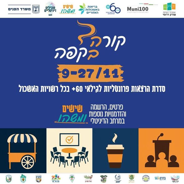 מרכז אפ 60+ ואשכול שורק דרומי מציגים: "קורה בקפה" - סדרת הרצאות פרונטליות בגדרה, מזכרת בתיה, קריית עקרון וברחבי האשכול בין ה-9 ל-27 בנובמבר בעלות סמלית
