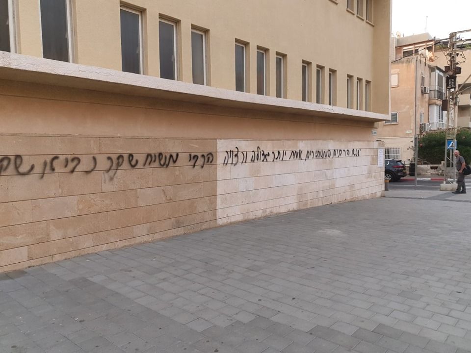 כתובות נאצה נגד הדת התגלו הבוקר על קיר בית כנסת בבת ים