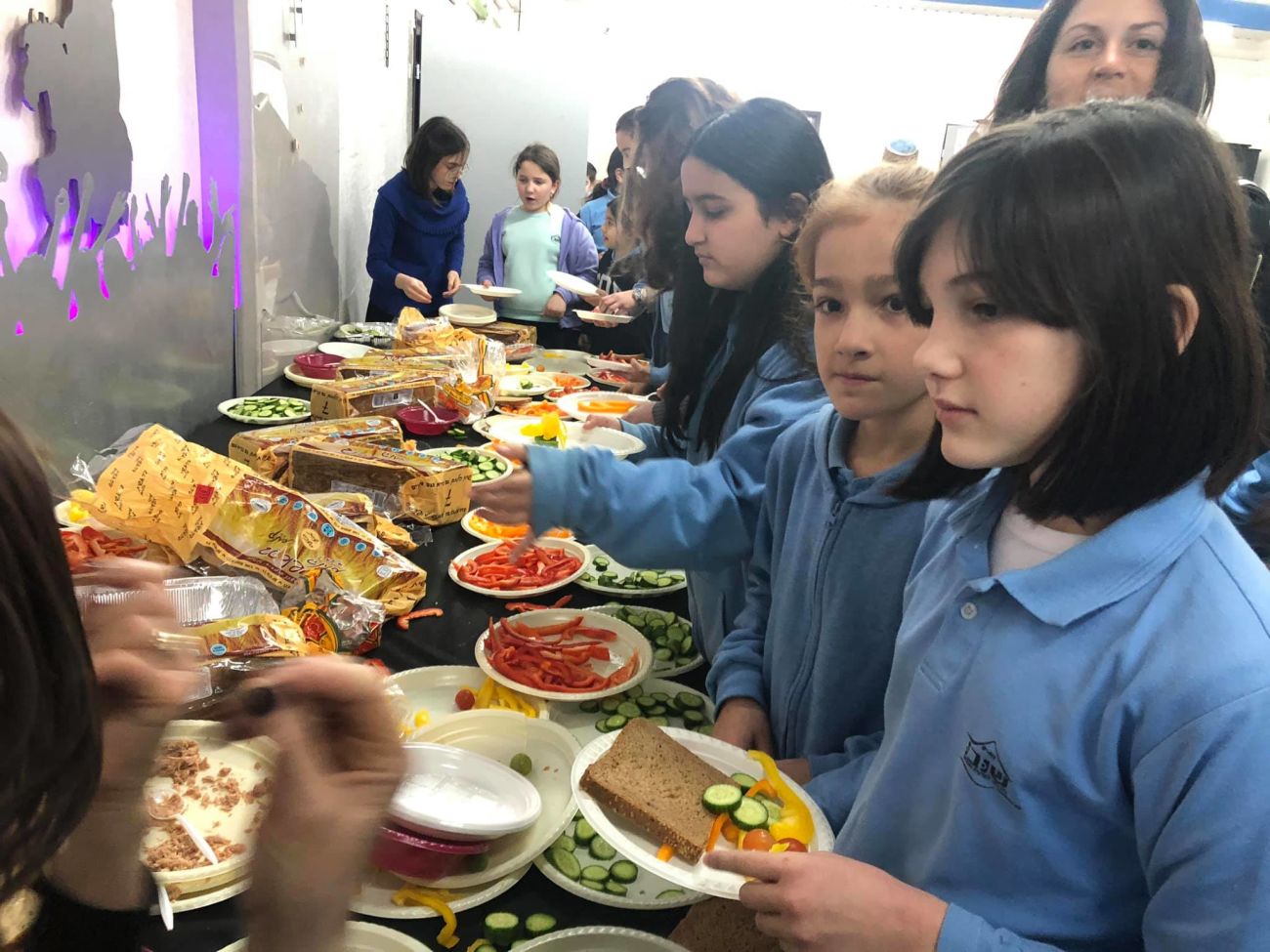 התלמידים נהנו לבחור לבד את הירקות אותם ישימו בכריך, נהנו ממגוון הצבעים הפרוסים על השולחן ופתחו את הבוקר בצורה מרוכזת ומלאת אנרגיה, לאחריה ישבו כל התלמידים והקשיבו להרצאה המסבירה על בחירה נכונה ואורח חיים בריא.