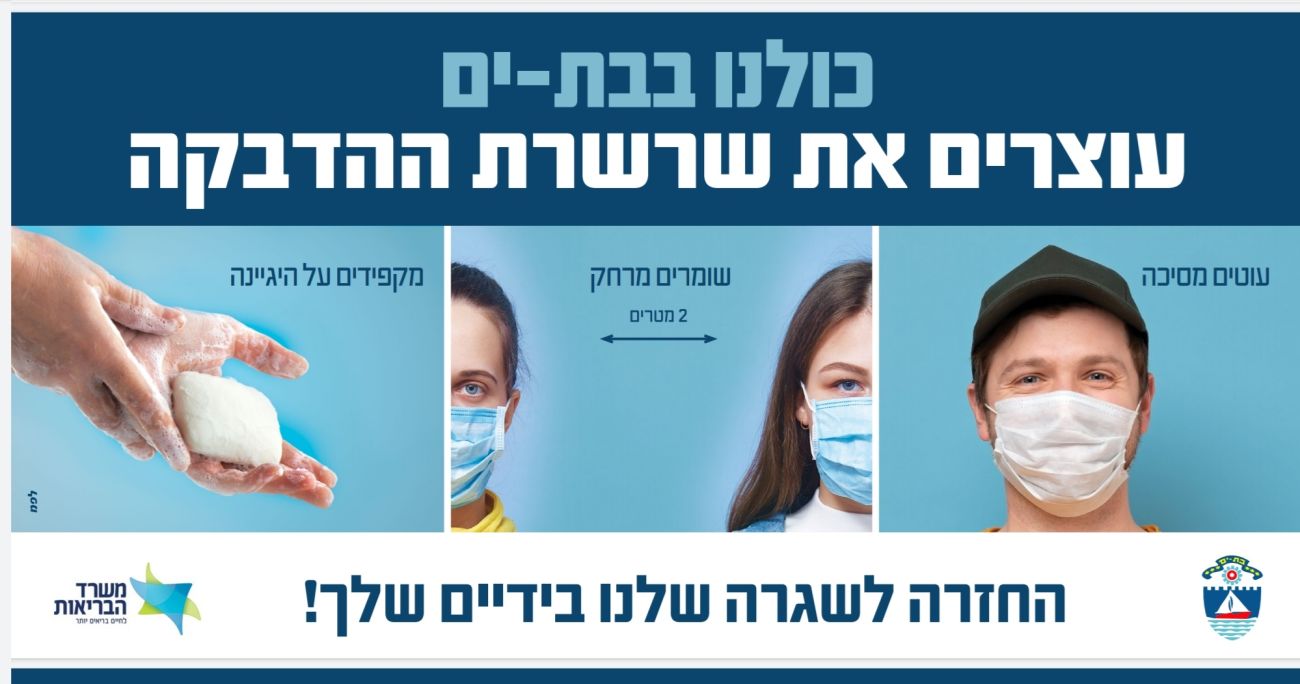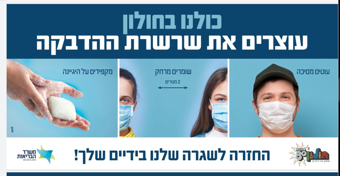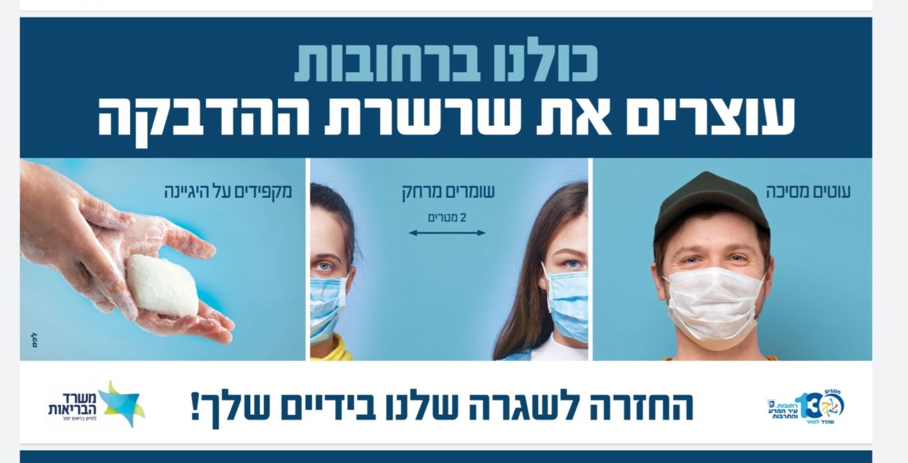 משרד הבריאות יוצא בקמפיין שלטי חוצות ברחבי רחובות, ראשון לציון, בת ים וחולון "כולנו עוצרים את שרשרת ההדבקה"