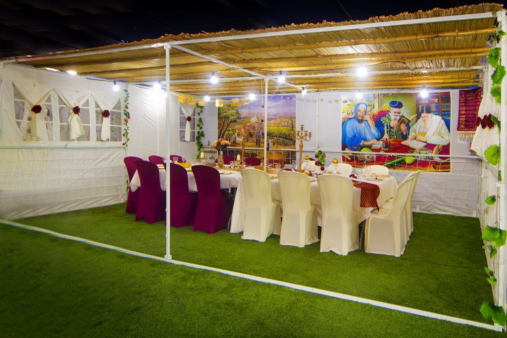 תוספות לסוכה: כסא אליהו, בד תמונת הרבנים, כיסוי כסא, קישוטים, לדים ועוד