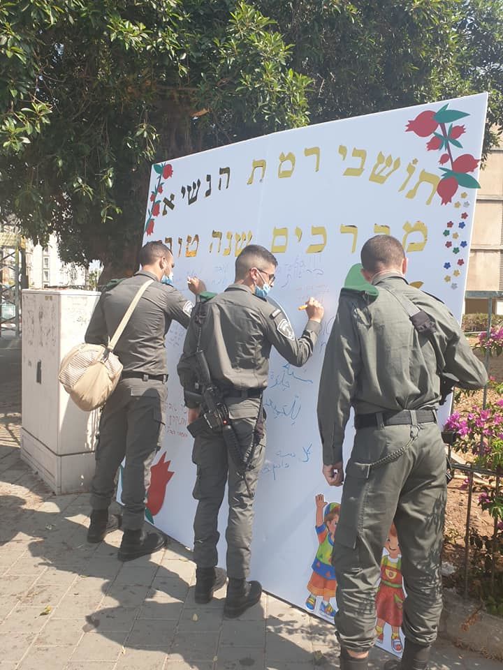 התלמידים יחד עם צוות ההוראה כבר החלו באיחולי שנה טובה ולאחריהם תושבים נוספים וחיילים שעברו במקום הצטרפו ליוזמה המרגשת וחתמו על הקיר את ברכותיהם.