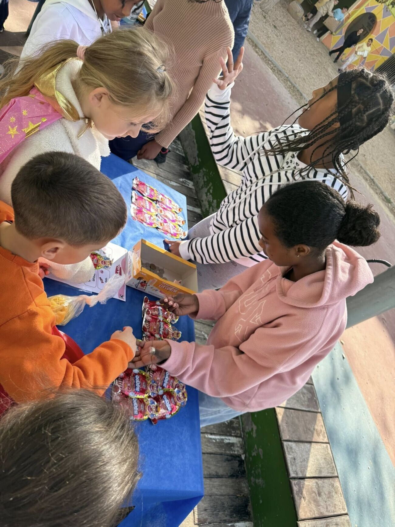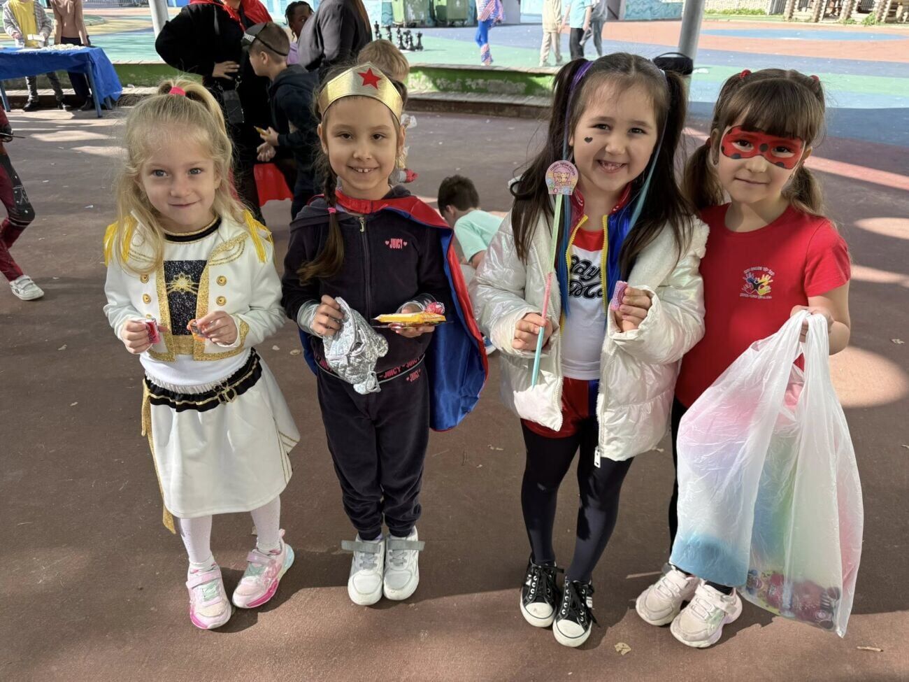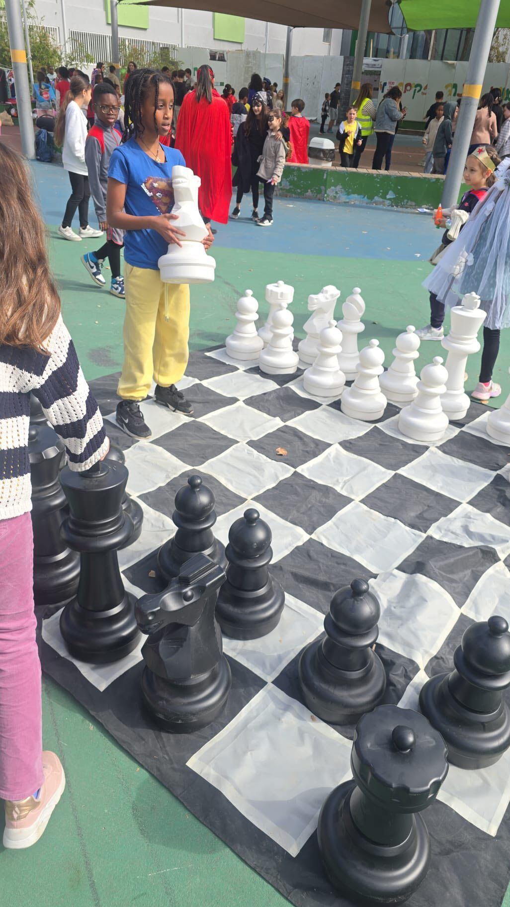במהלך האירוע, נהנו התלמידים מדוכני תחפושות שהוצעו למכירה, לצד הפסקה מתוקה שלוותה בשירים וממתקים. בנוסף, הוקמו במקום דוכני איפור, עמדות לקליעת צמות ומשחקי פנאי וכיף – בהם גם לוח שחמט ענק, אשר תרמו כולם ליצירת אווירה שמחה במיוחד.
