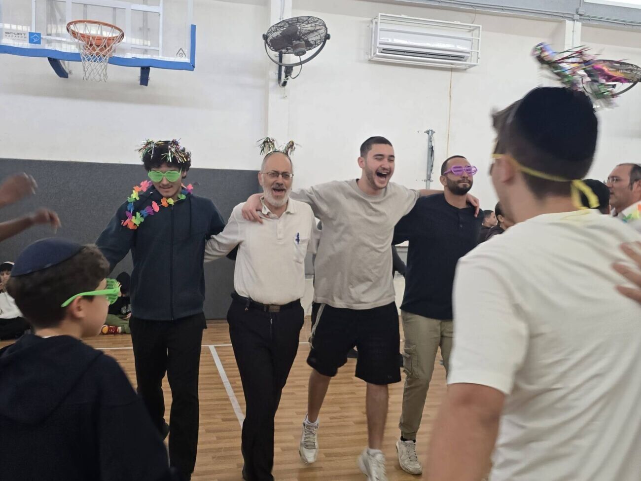 בנוסף לריקודים, התלמידים התקשטו באביזרים צבעוניים ומשקפיים היתוליים. כחלק מההכנות לחג הפורים, הציגו נציגי מנהיגות התלמידים בפני החברים את "תקנון פורים" הבית-ספרי, כפי שנראה בתמונות מהאירוע.