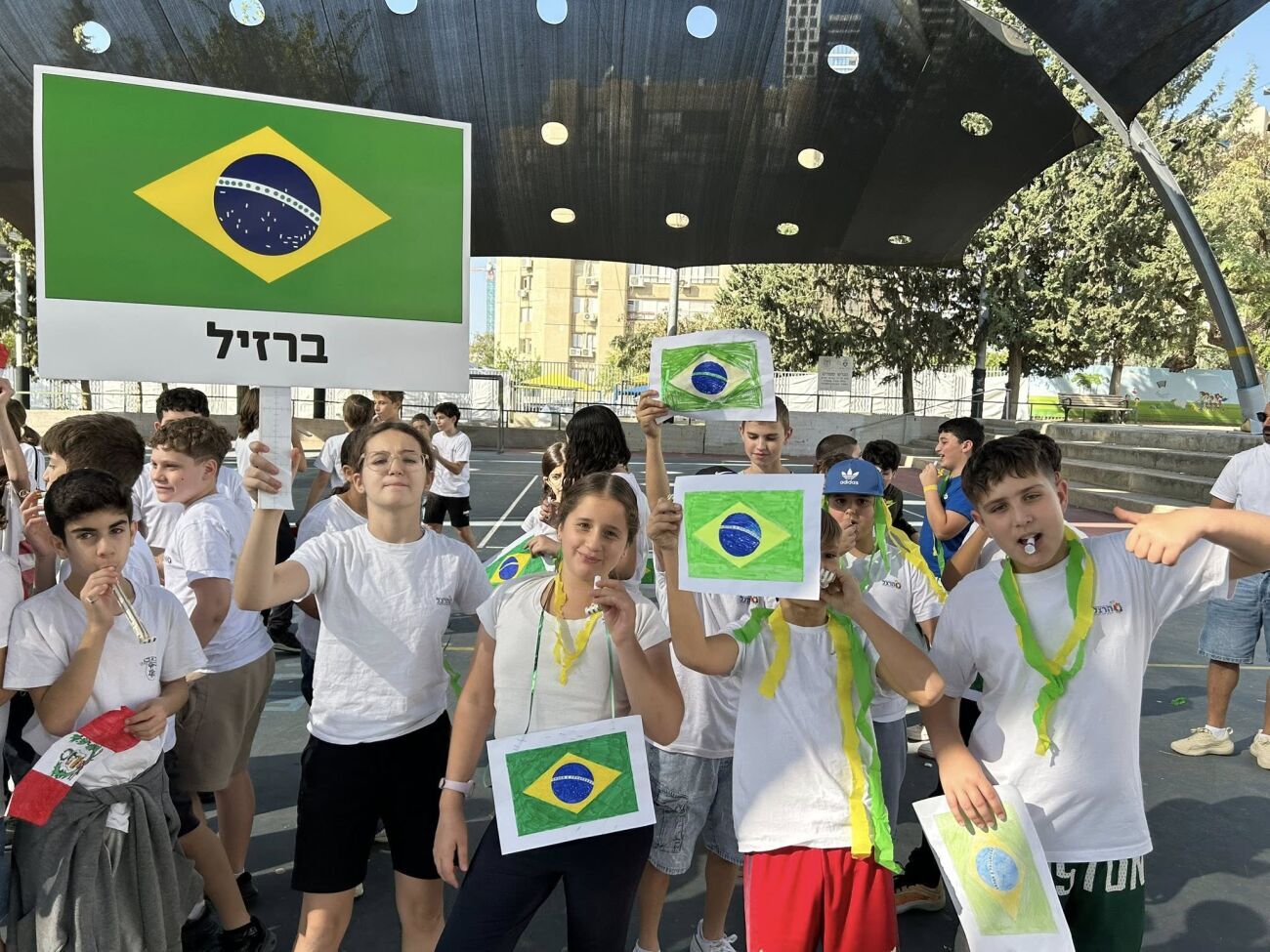 במהלך האירוע, התלמידים נשאו בגאווה את דגלי ישראל לצד דגלי המדינות שתמכו בהחלטה ההיסטורית, ושרו שירים ציוניים ברוח של אחדות, הכרת תודה ותקווה.