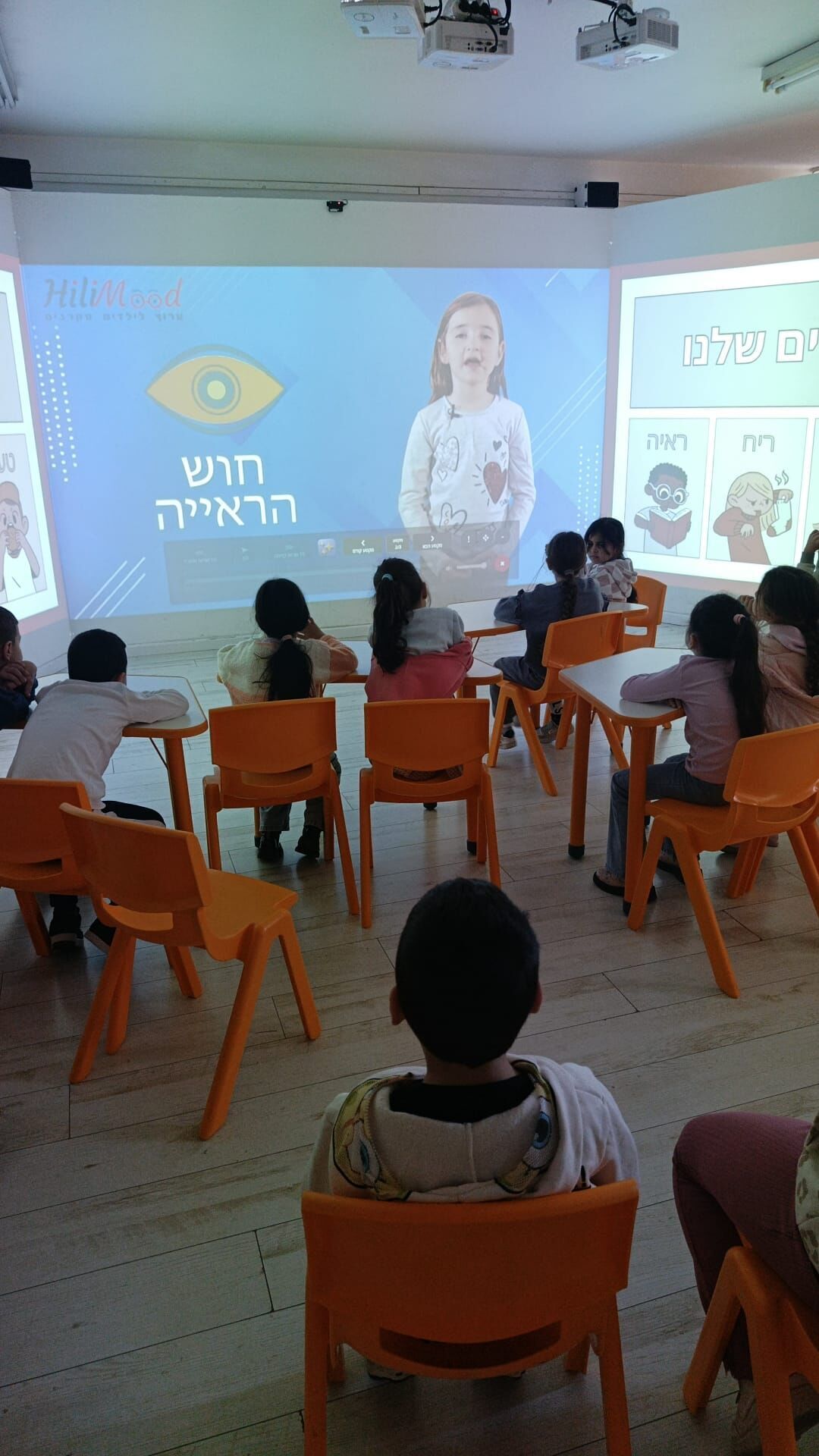 במסגרת השיעור, שעסק בנושא 'חמשת החושים', התלמידים לא רק למדו את החומר התיאורטי אלא תרגלו את המידע באופן מעשי. השימוש בחדר המתקדם אפשר לילדים לחוות את הלמידה באמצעות משחקים אינטראקטיביים וחוויה לימודית ויזואלית, שהפכה את חקר החושים למוחשי ומהנה.
