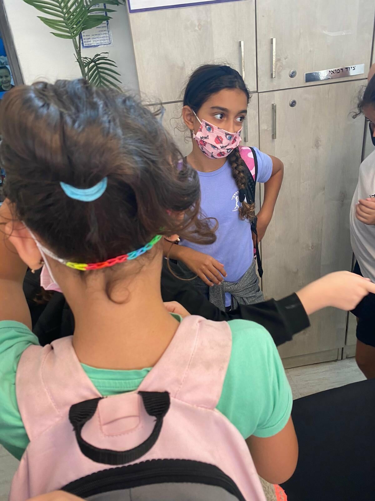 תלמידי בית הספר יד מרדכי בבת ים יצרו שרשרת צבעונית עשויה ממשחק הגומי לום במטרה לשמור על המסיכה נקייה